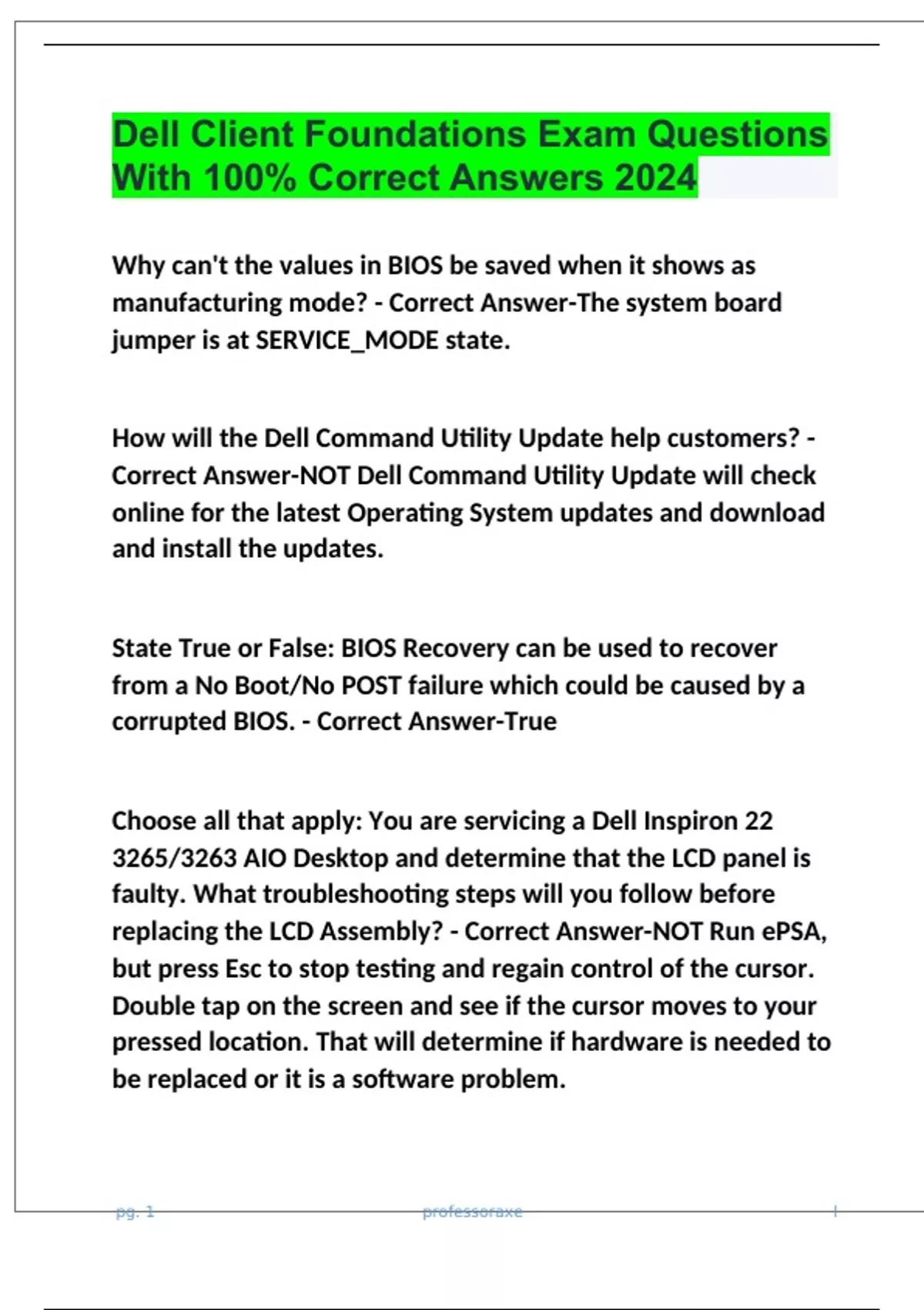 Dell Client Foundations Exam Questions With 100% Correct Answers 2024