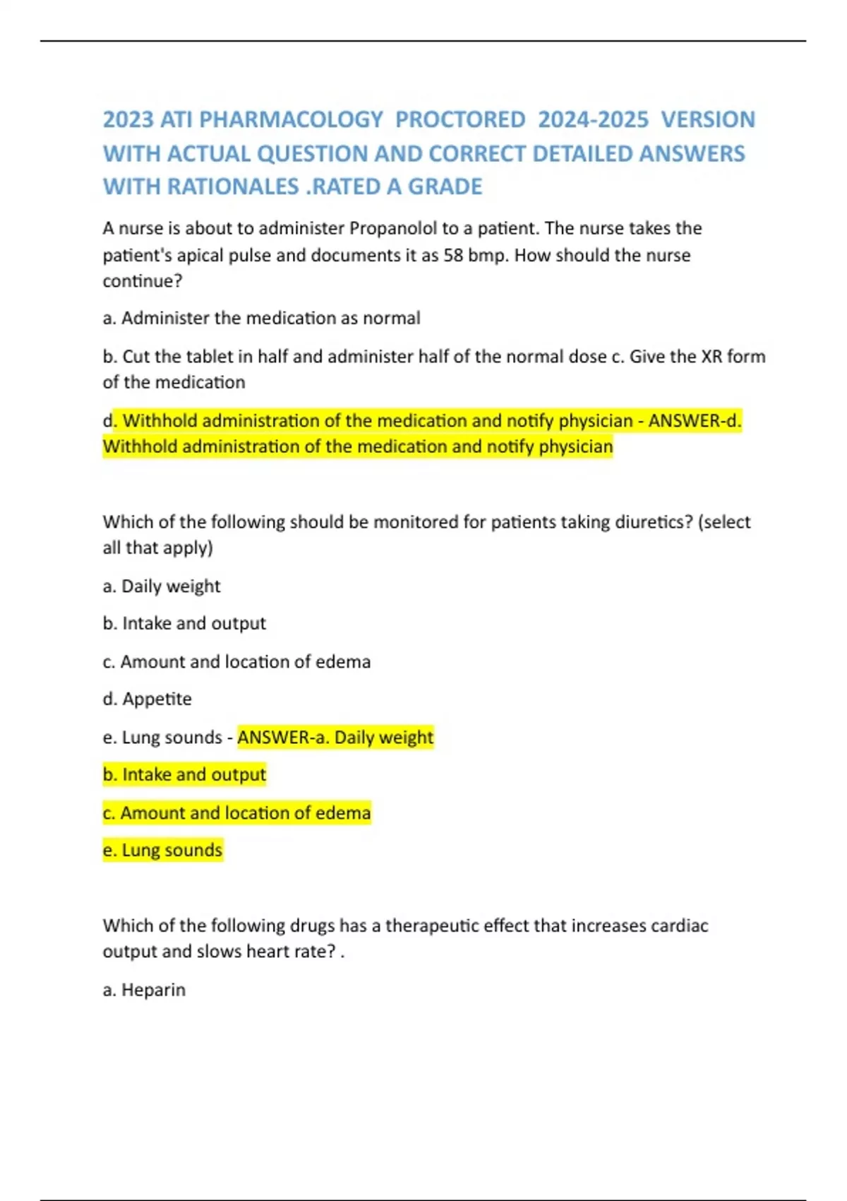 2023 ATI PHARMACOLOGY PROCTORED VERSION WITH ACTUAL QUESTION AND CORRECT DETAILED ANSWERS WITH RATIONALES .RATED A GRADE