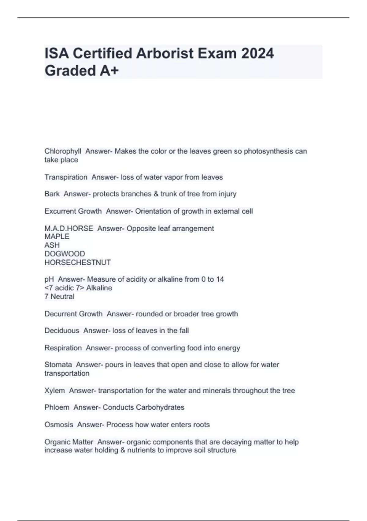 ISA Certified Arborist Exam 2024 Graded A+