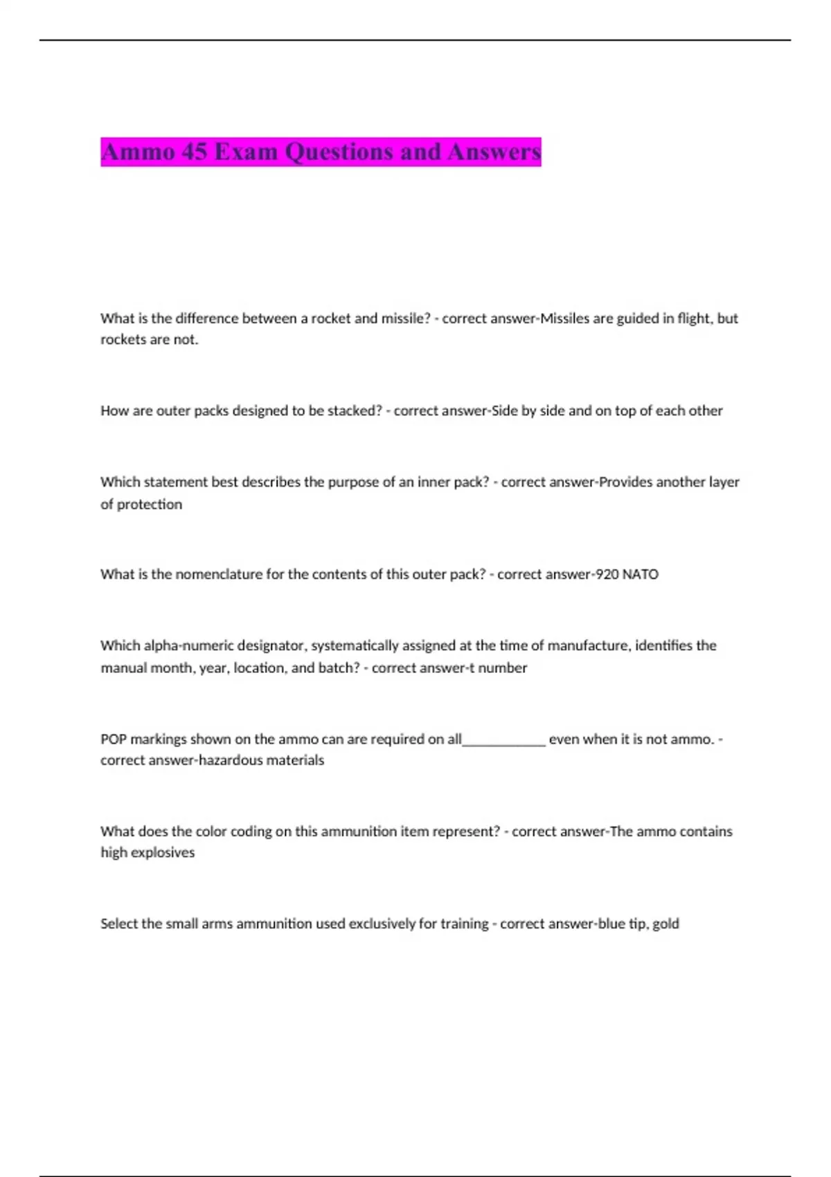 Ammo 45 Exam Questions and Answers