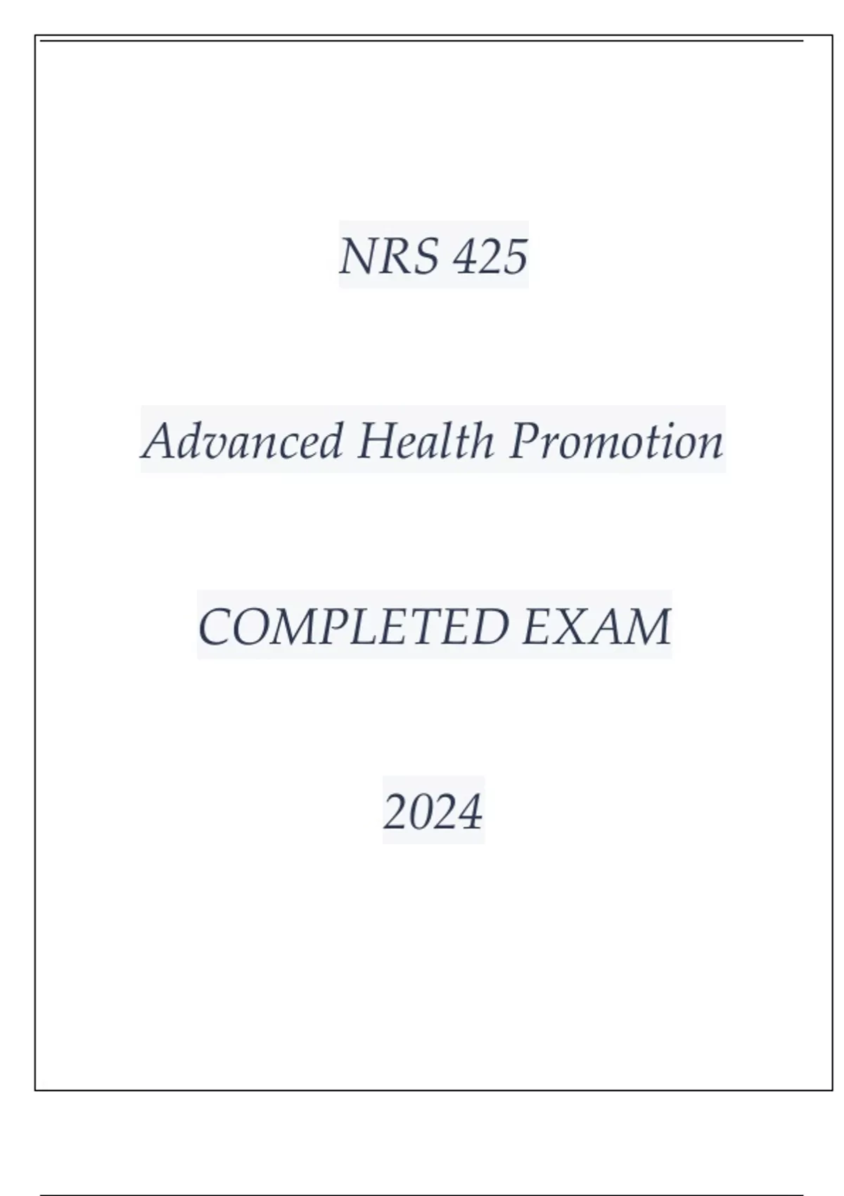 NRS 425 HEALTH PROMOTION EXAM Q & A WITH RATIONALES 2024.NRS 425 HEALTH PROMOTION EXAM Q & A WITH RATIONALES 2024.NRS 425 HEALTH PROMOTION EXAM Q & A WITH RATIONALES 2024.