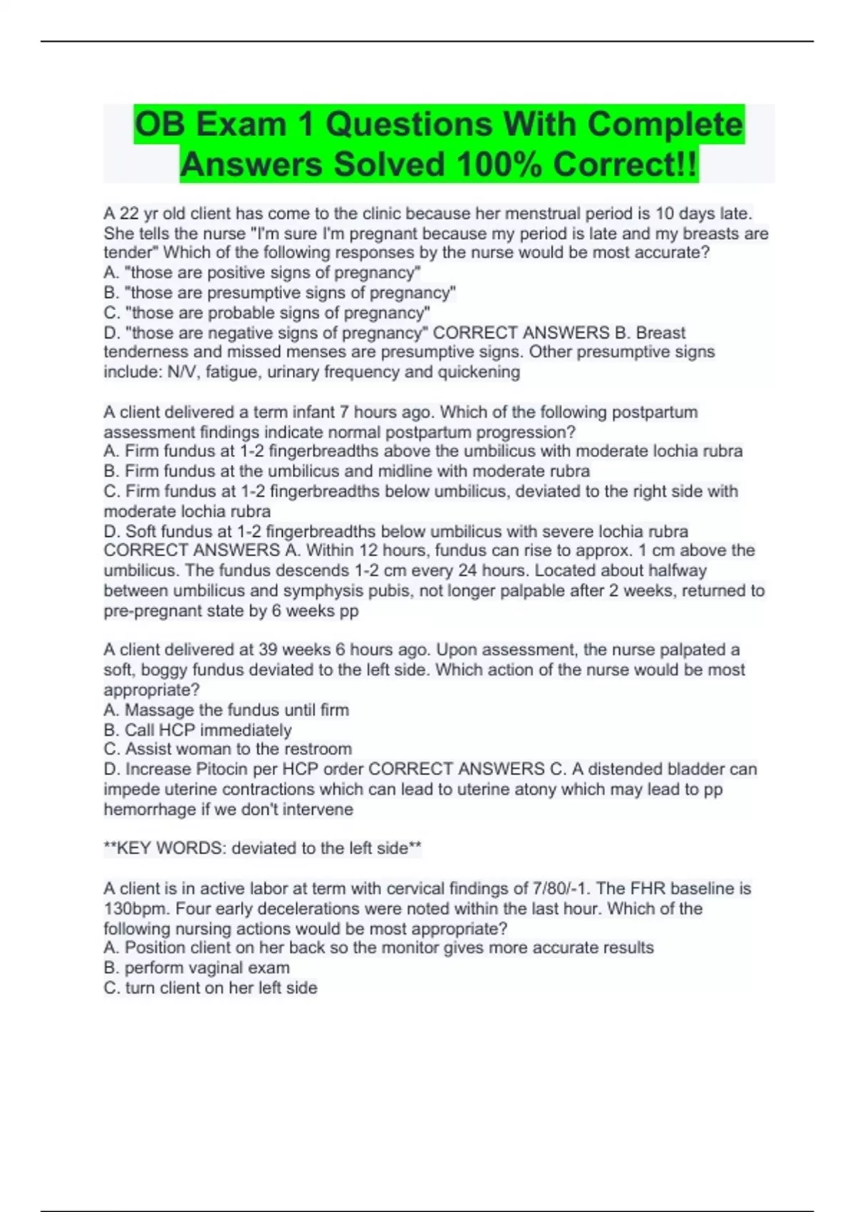 ob exam 1 questions with complete answers solved 1
