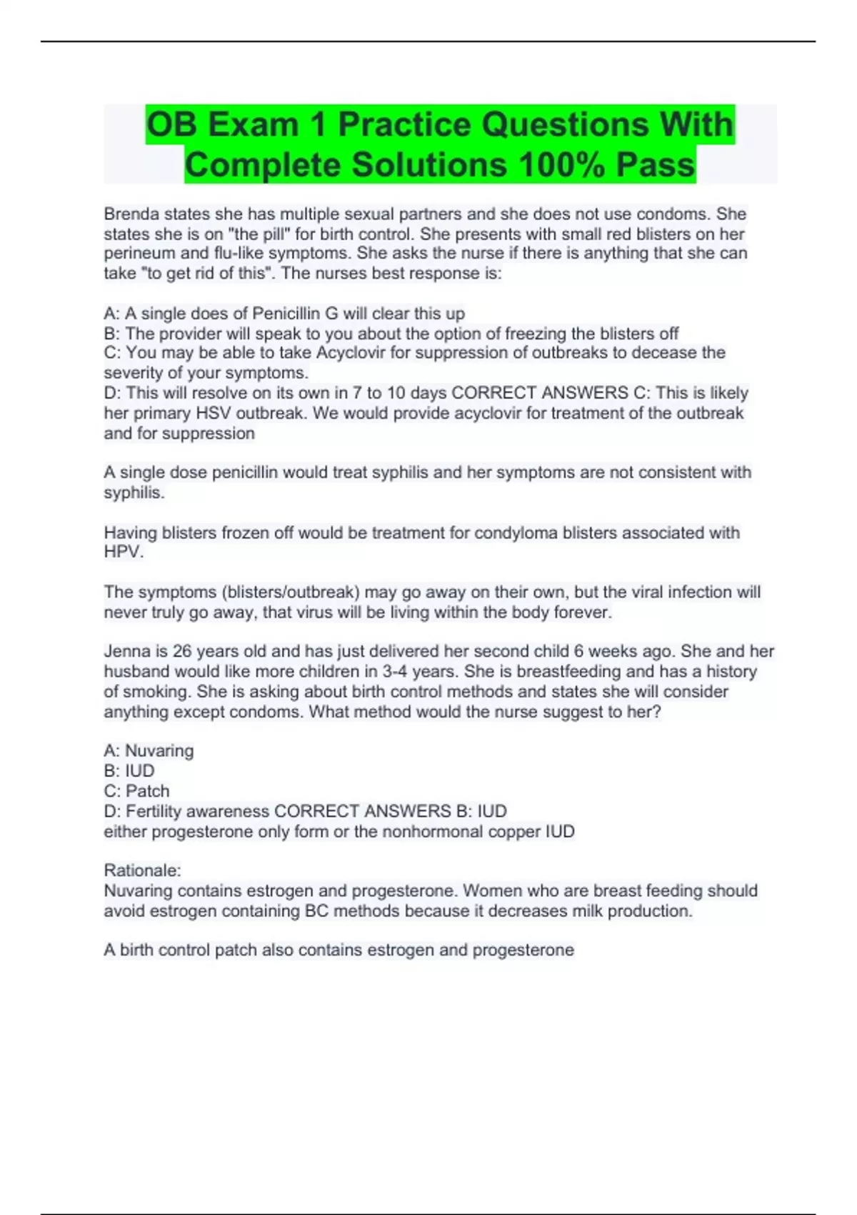 OB Exam 1 Practice Questions With Complete Solutions 100% Pass