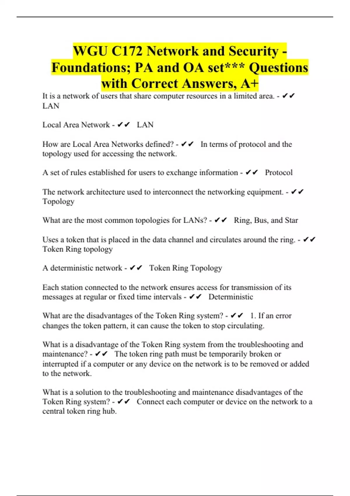 WGU C172 Network and Security - Foundations; PA and OA set*** Questions with Correct Answers, A+