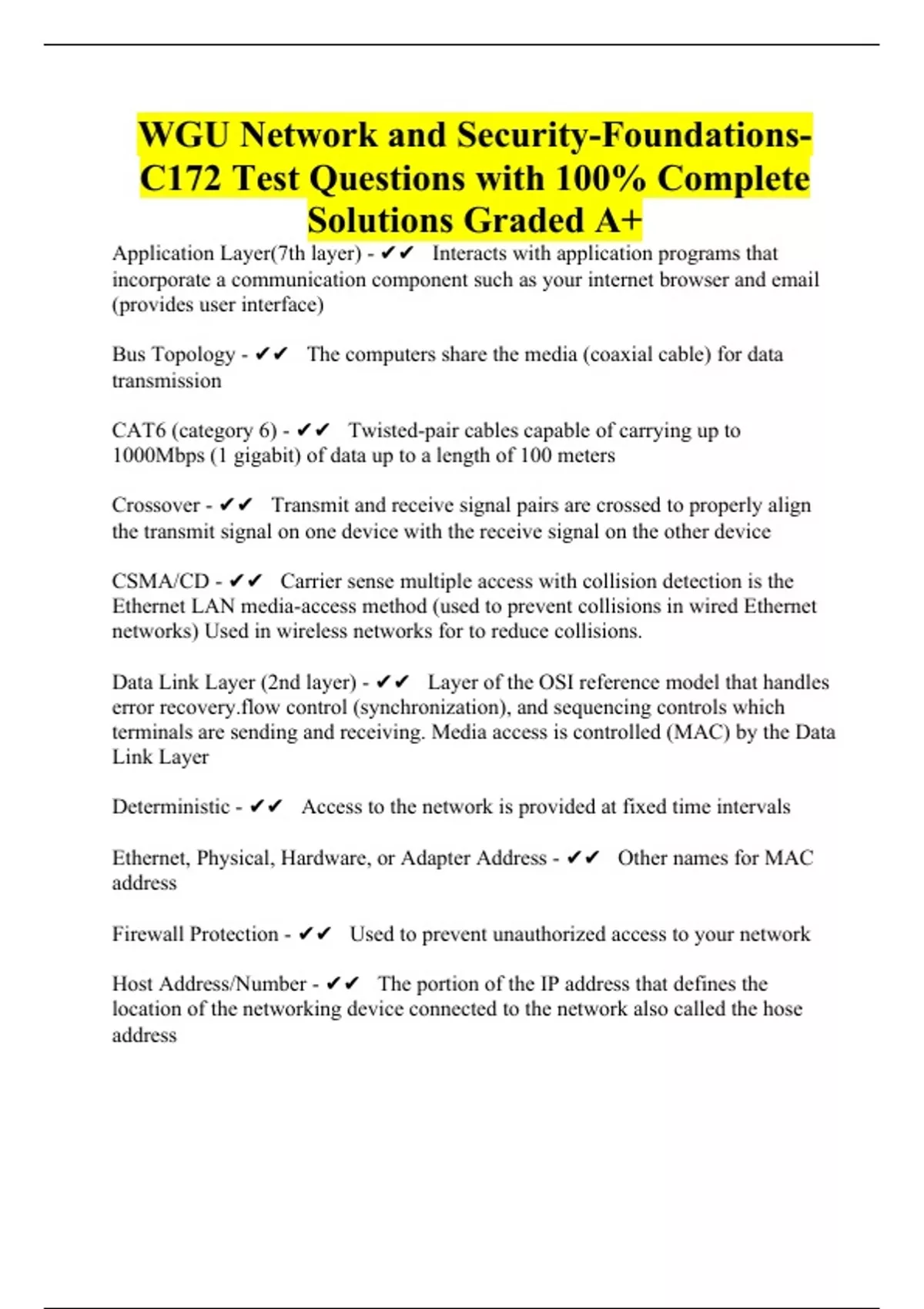 WGU Network and Security-Foundations-C172 Test Questions with 100% Complete Solutions Graded A+