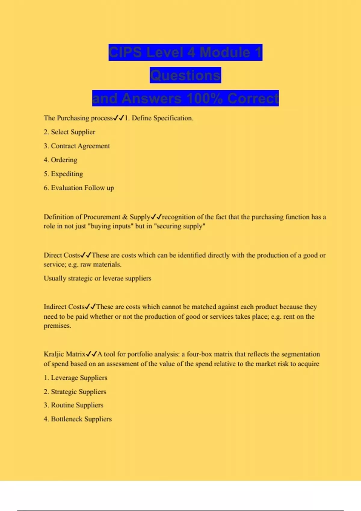 CIPS Level 4 Module 1 Questions and Answers 100% Correct