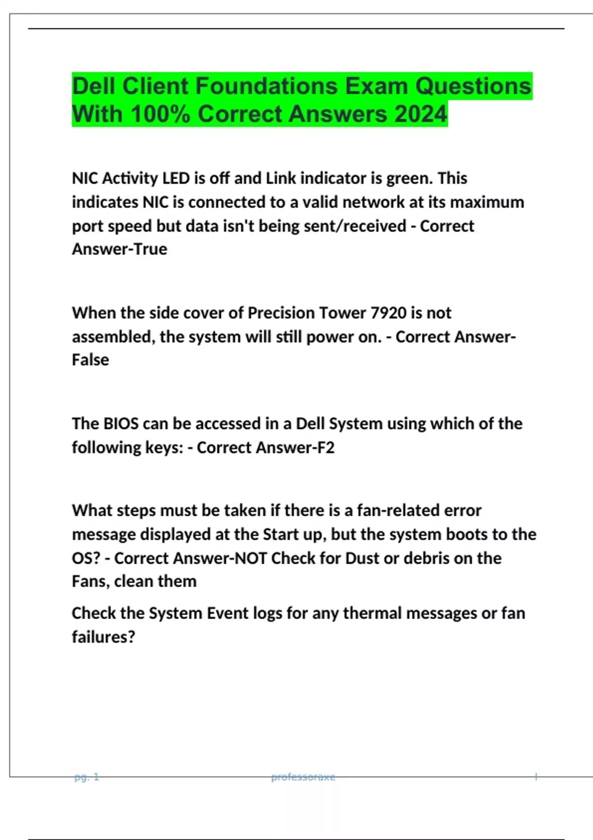 Dell Client Foundations Exam Questions With 100% Correct Answers 2024