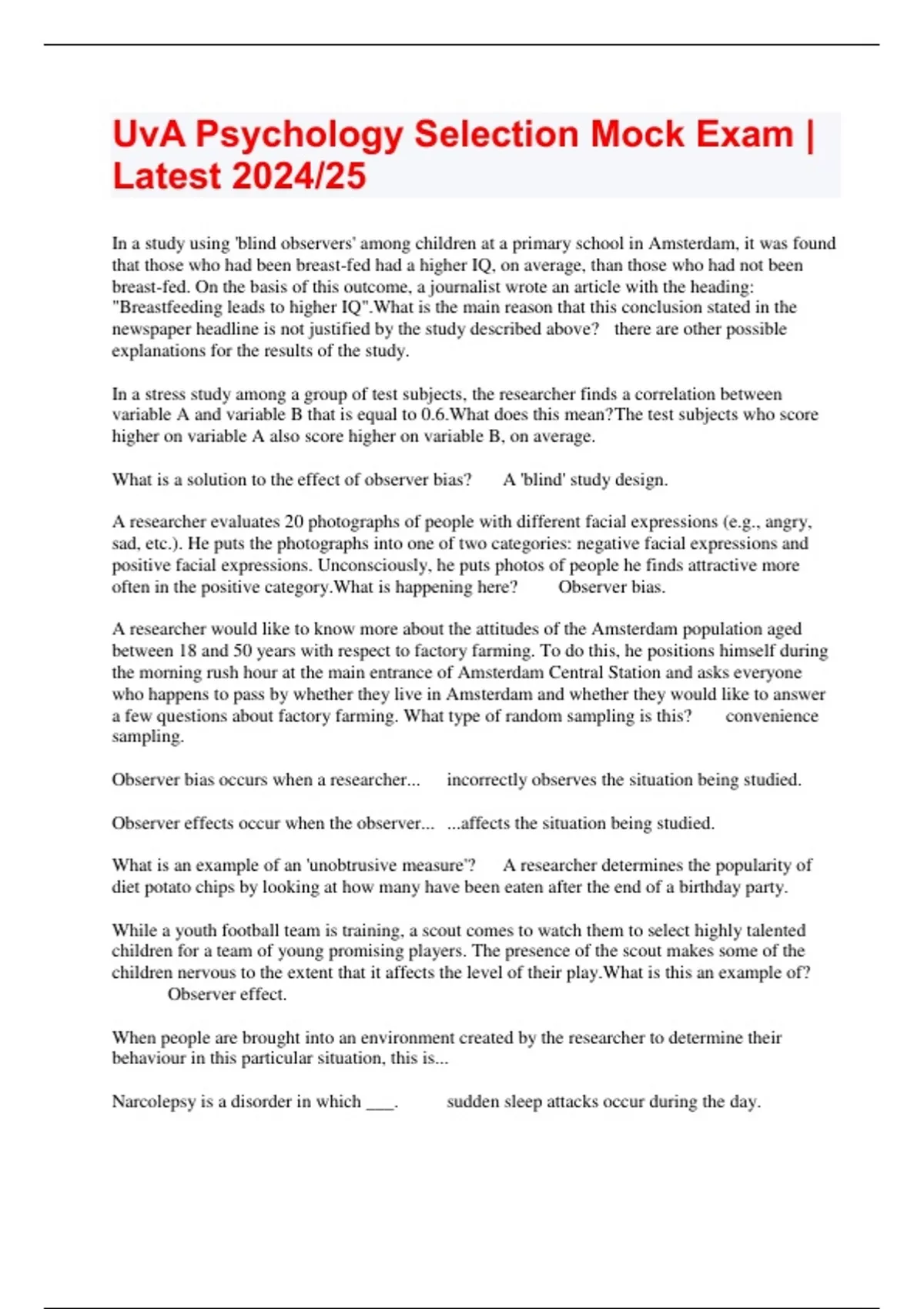 UvA Psychology Selection Mock Exam | Latest 2024/25
