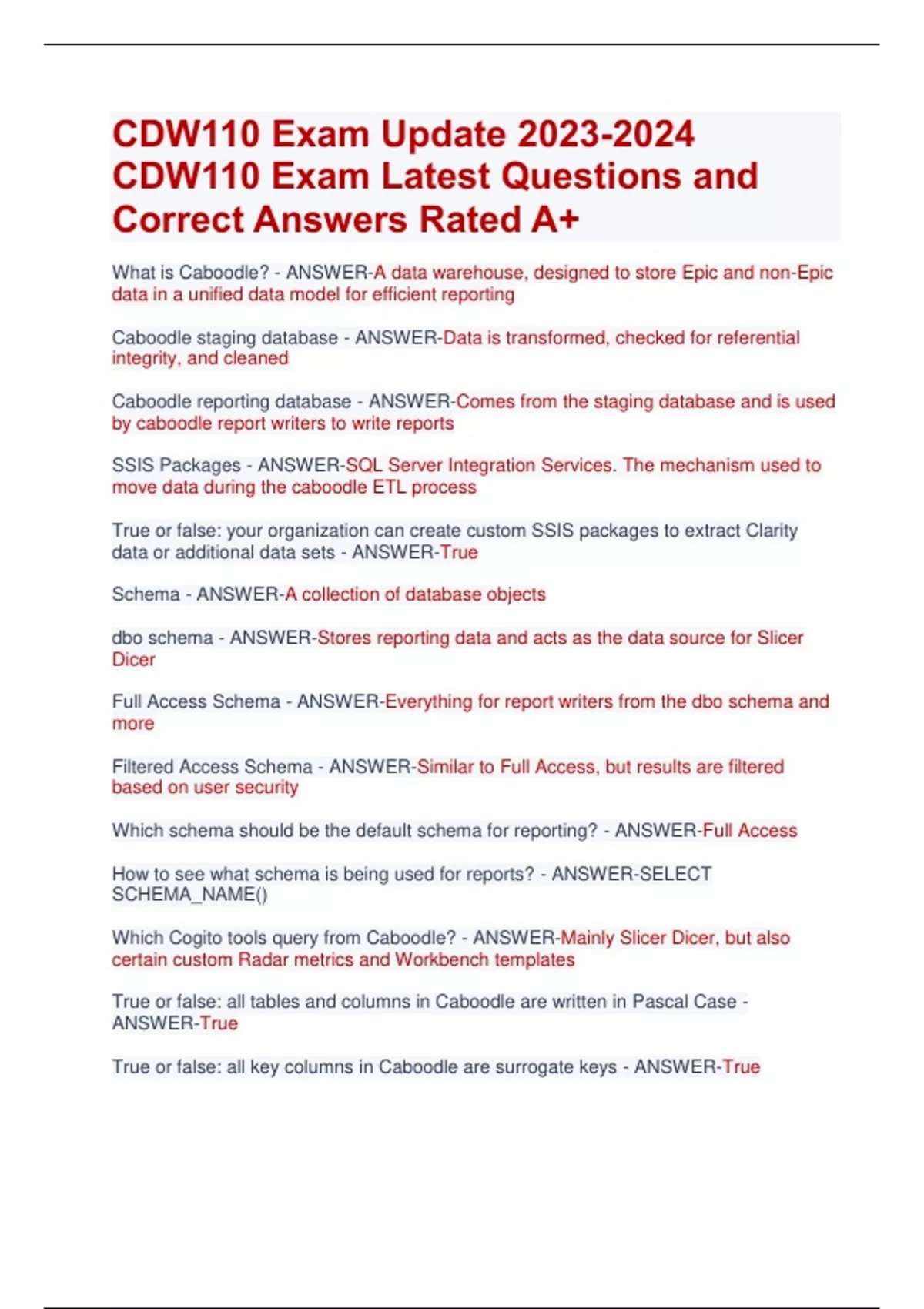 CDW110 Exam Update CDW110 Exam Latest Questions and Correct Answers Rated A+