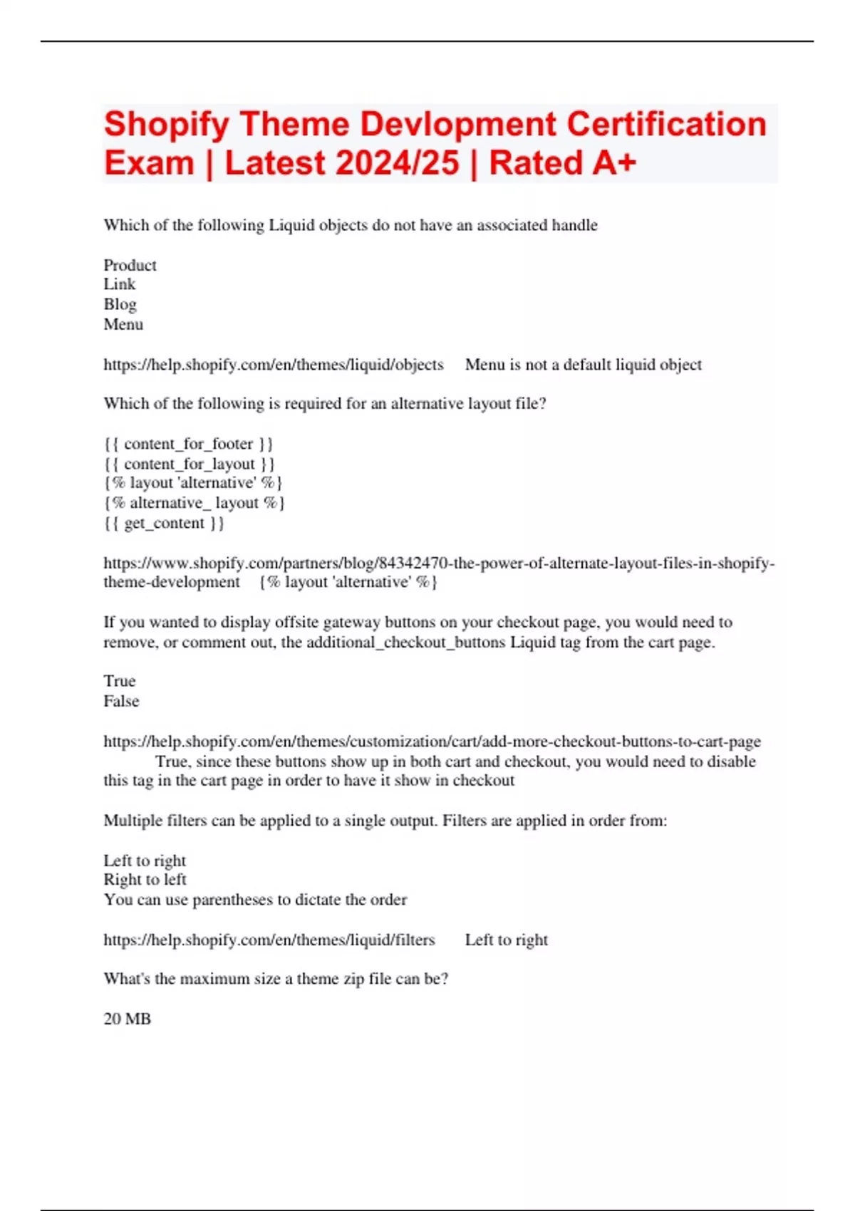 Shopify Theme Devlopment Certification Exam | Latest 2024/25 | Rated A+