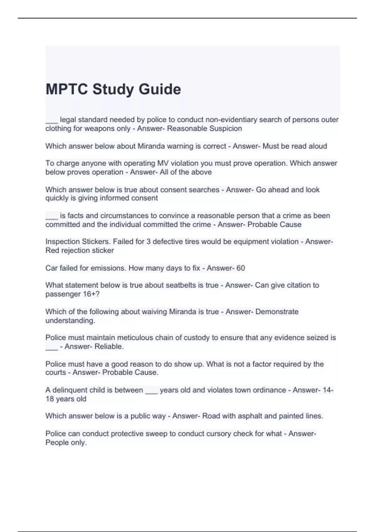 MPTC Study Guide with complete solutions