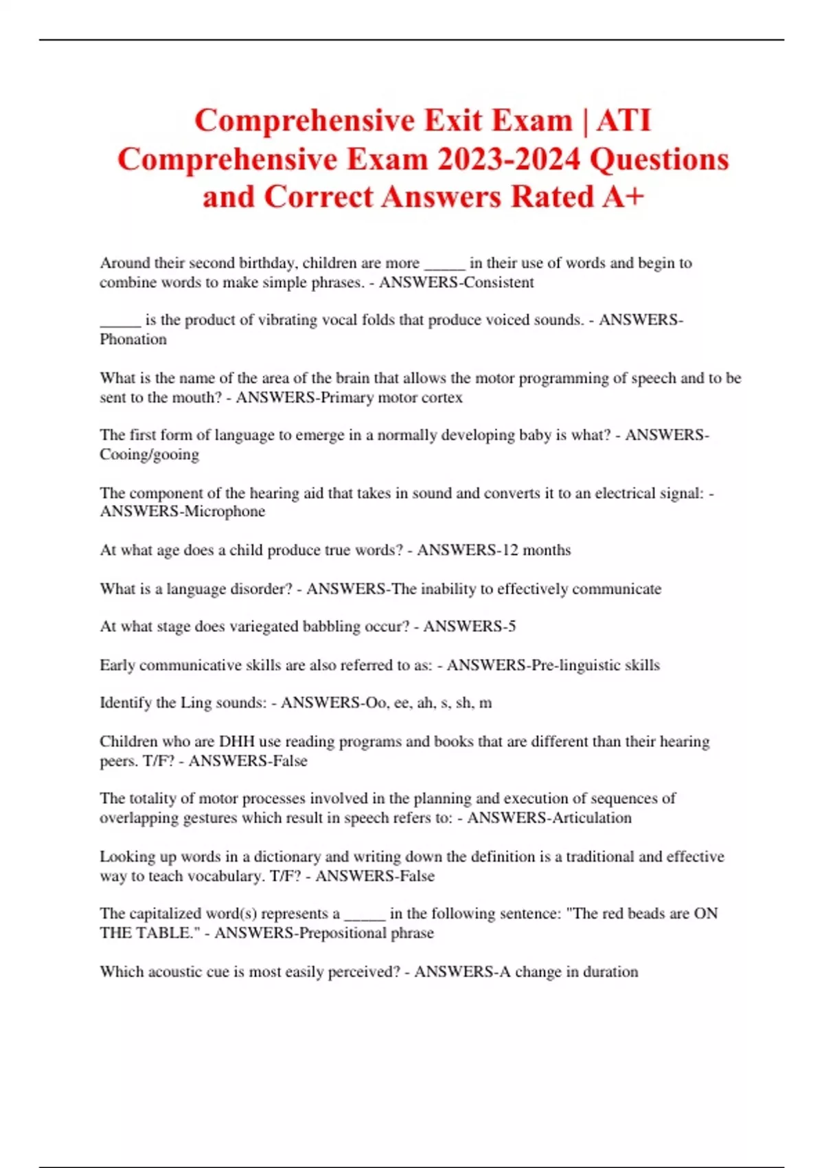Comprehensive Exit Exam | ATI Comprehensive Exam Questions and Correct Answers Rated A+
