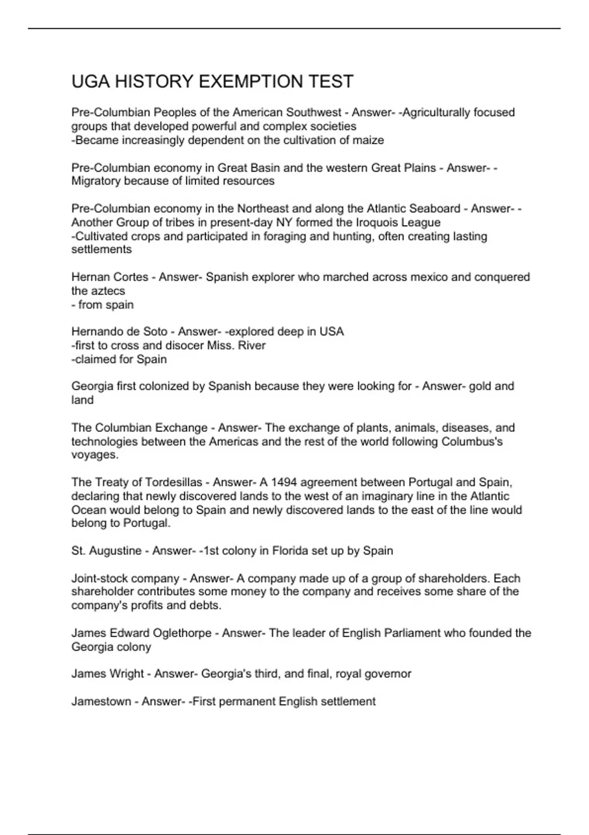 UGA HISTORY EXEMPTION TEST