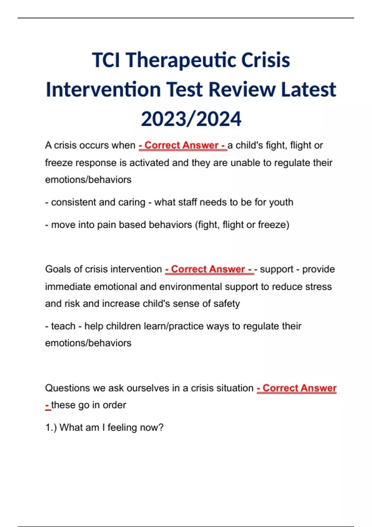 TCI Therapeutic Crisis Intervention Test Review Latest 2023/2024 TCI Therapeutic Crisis Intervention Test Review Latest 2023/2024 TCI Therapeutic Crisis Intervention Test Review Latest 2023/2024
