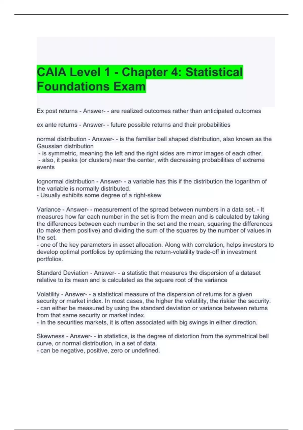 CAIA Level 1 - Chapter 4 Statistical Foundations Exam Questions and Answers 2024