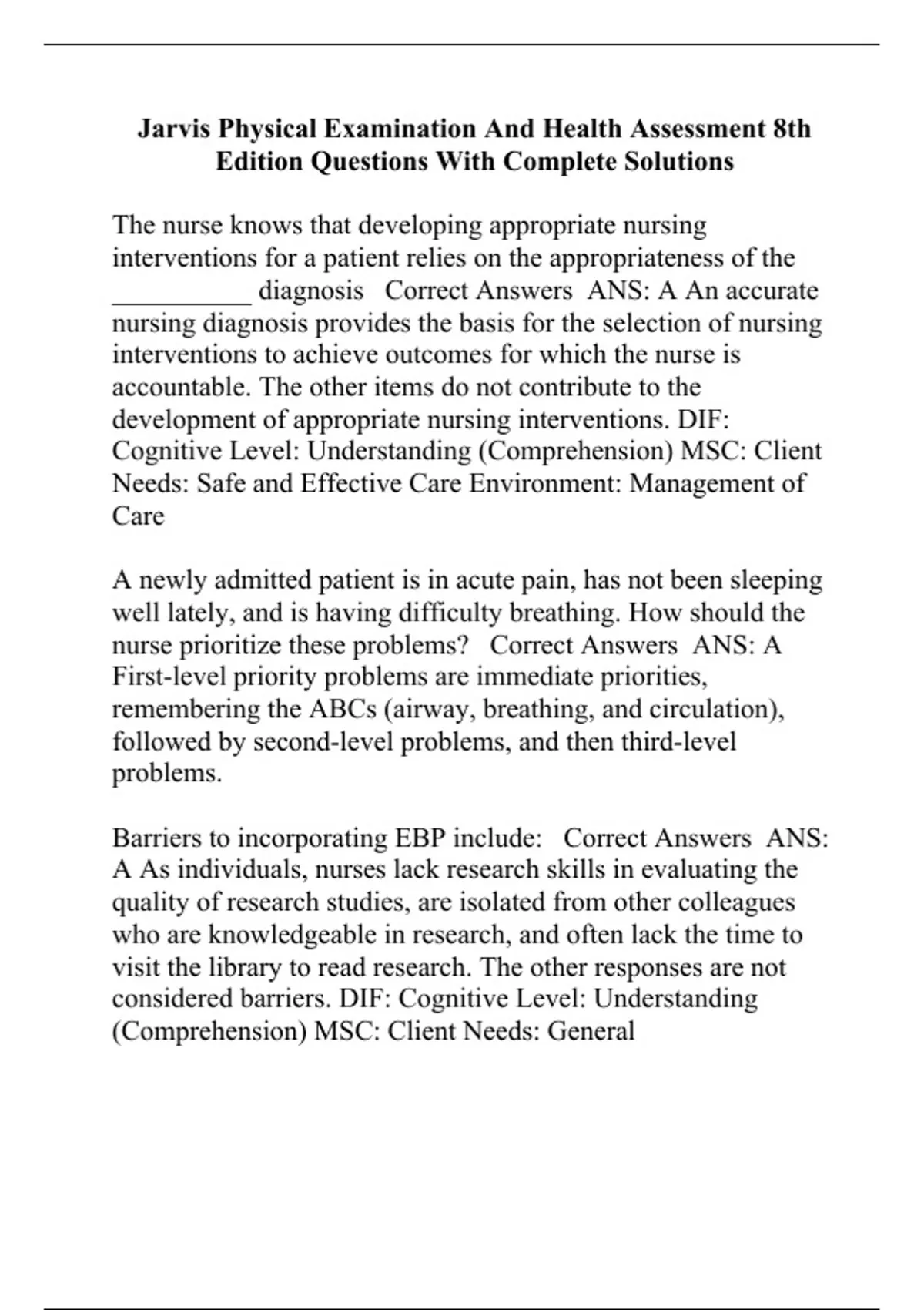Jarvis Physical Examination And Health Assessment 8th Edition Questions With Complete Solutions
