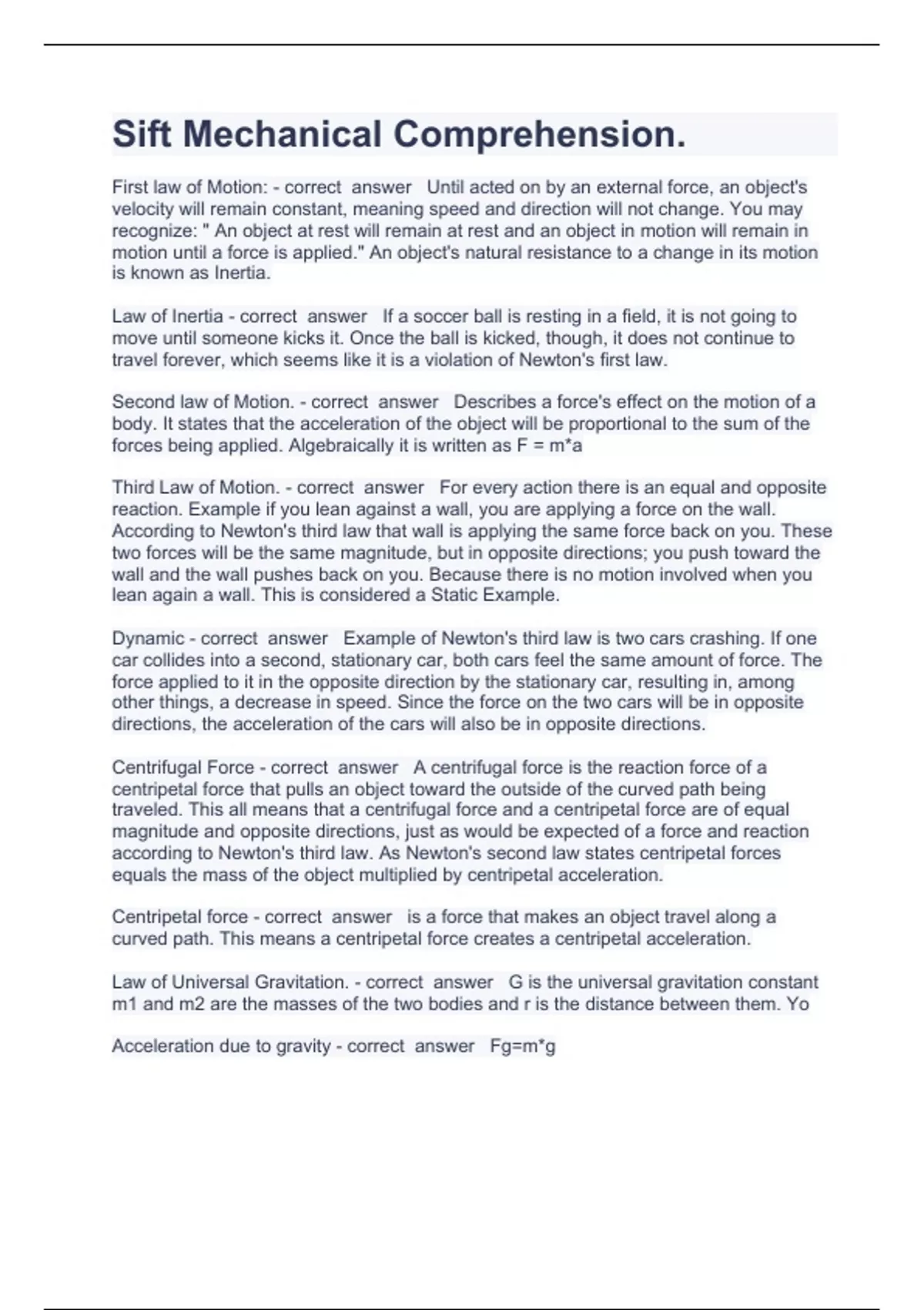 Sift Mechanical Comprehension d questions and answers rated A+ 2024