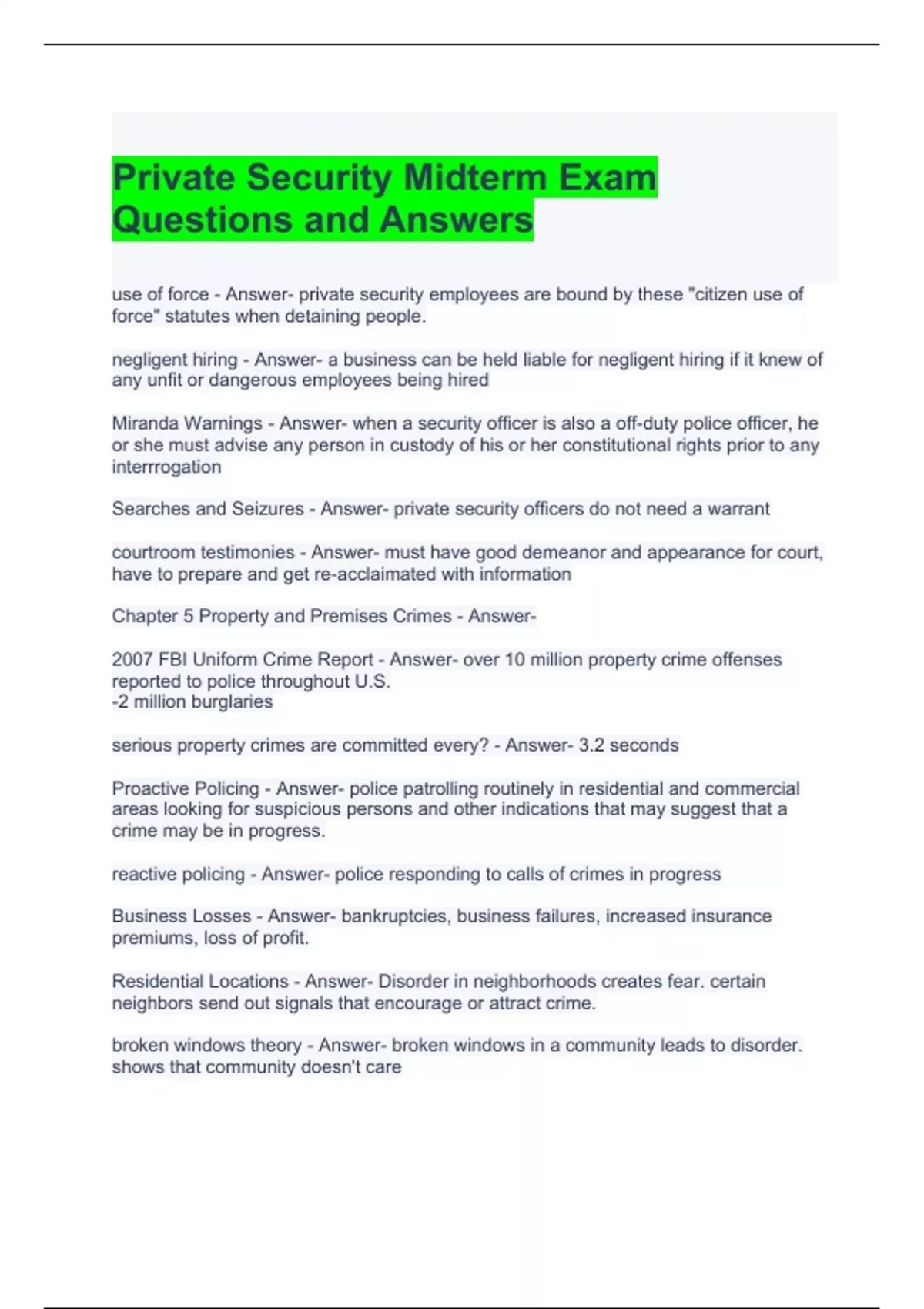 Private Security Midterm Exam Questions and Answers