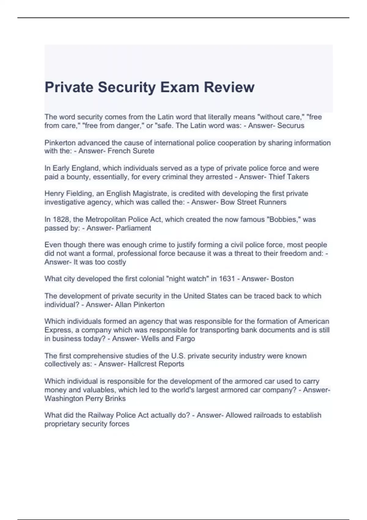 Private Security Exam Review