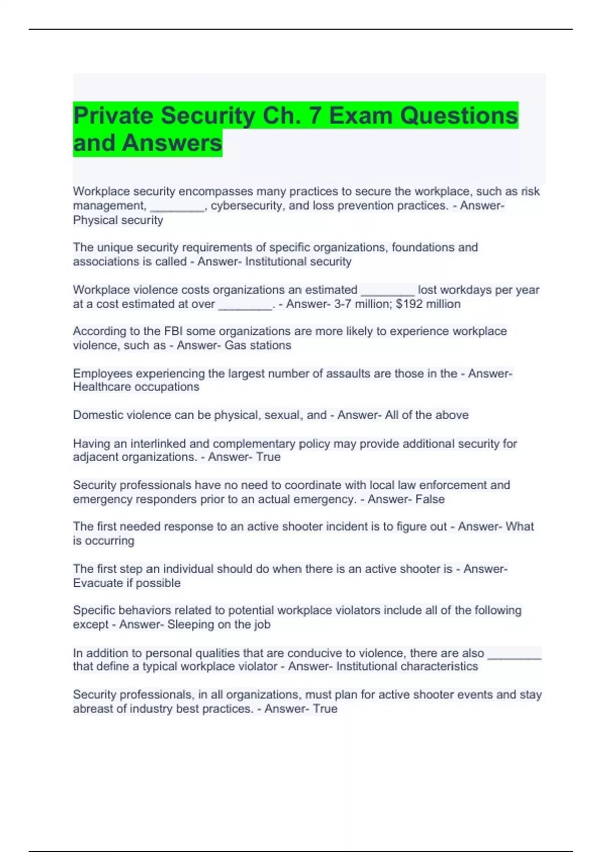Private Security Ch. 7 Exam Questions and Answers