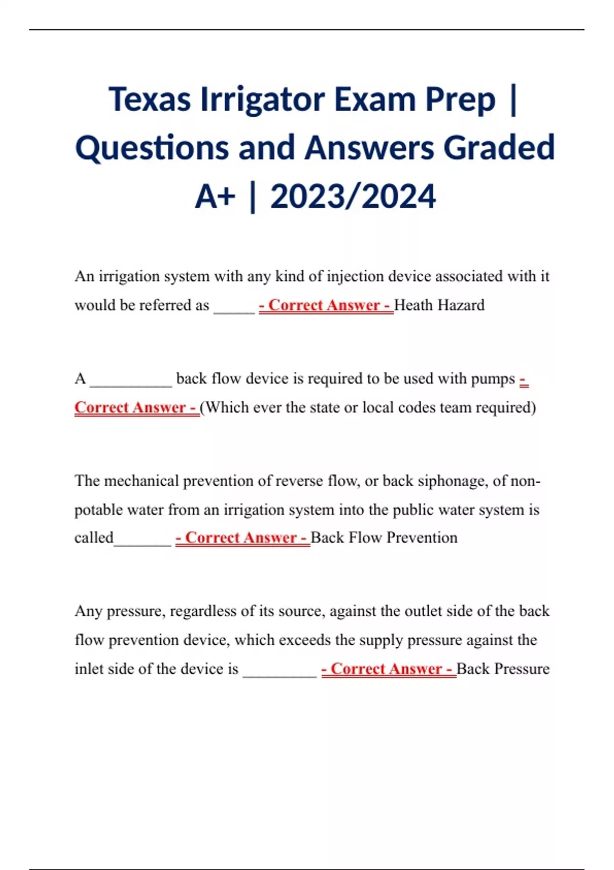 Texas Irrigator Exam Prep | Questions and Answers Graded A+ | 2023/2024