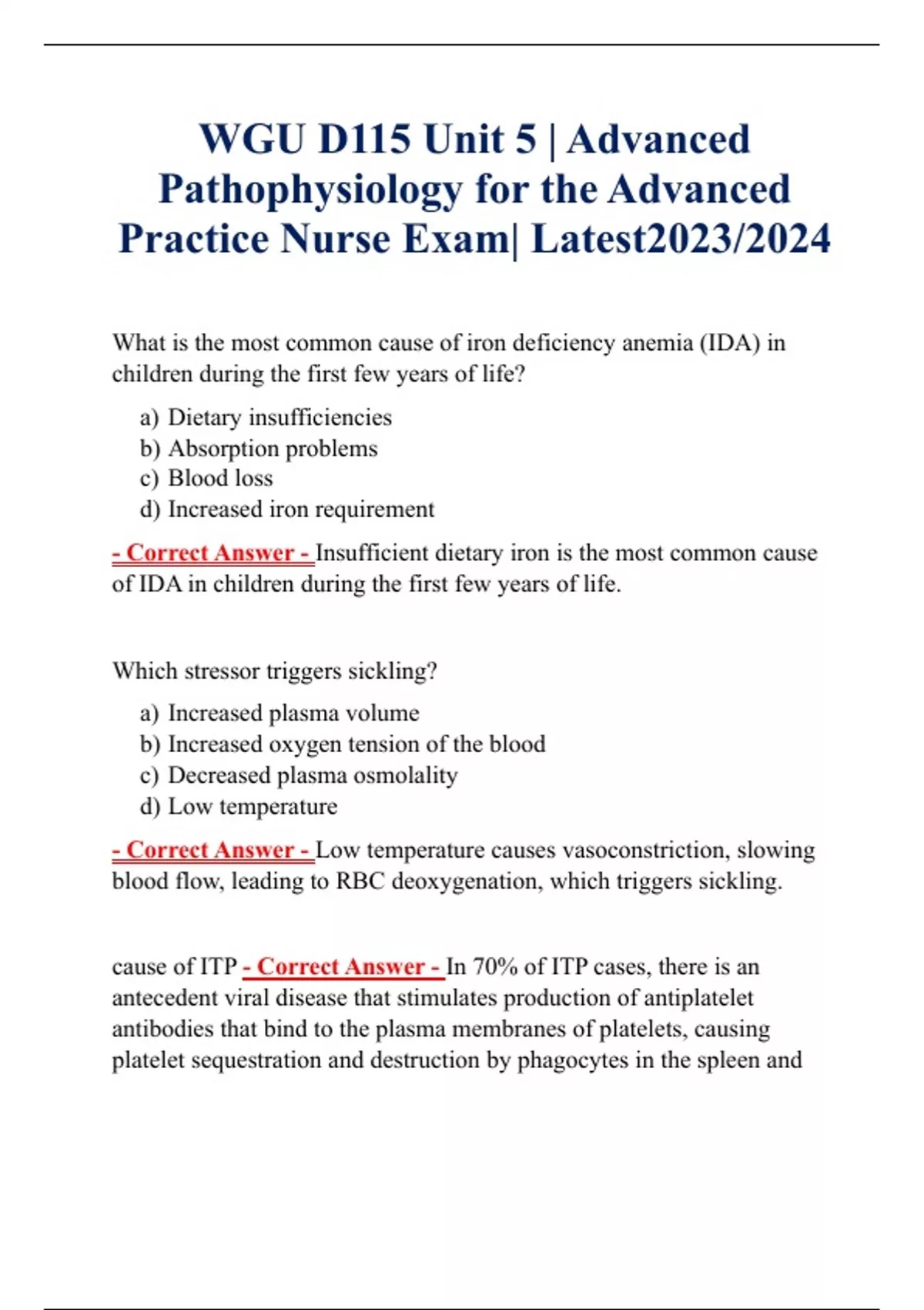 WGU D115 Unit 5 | Advanced Pathophysiology for the Advanced Practice Nurse Exam| Latest2023/2024