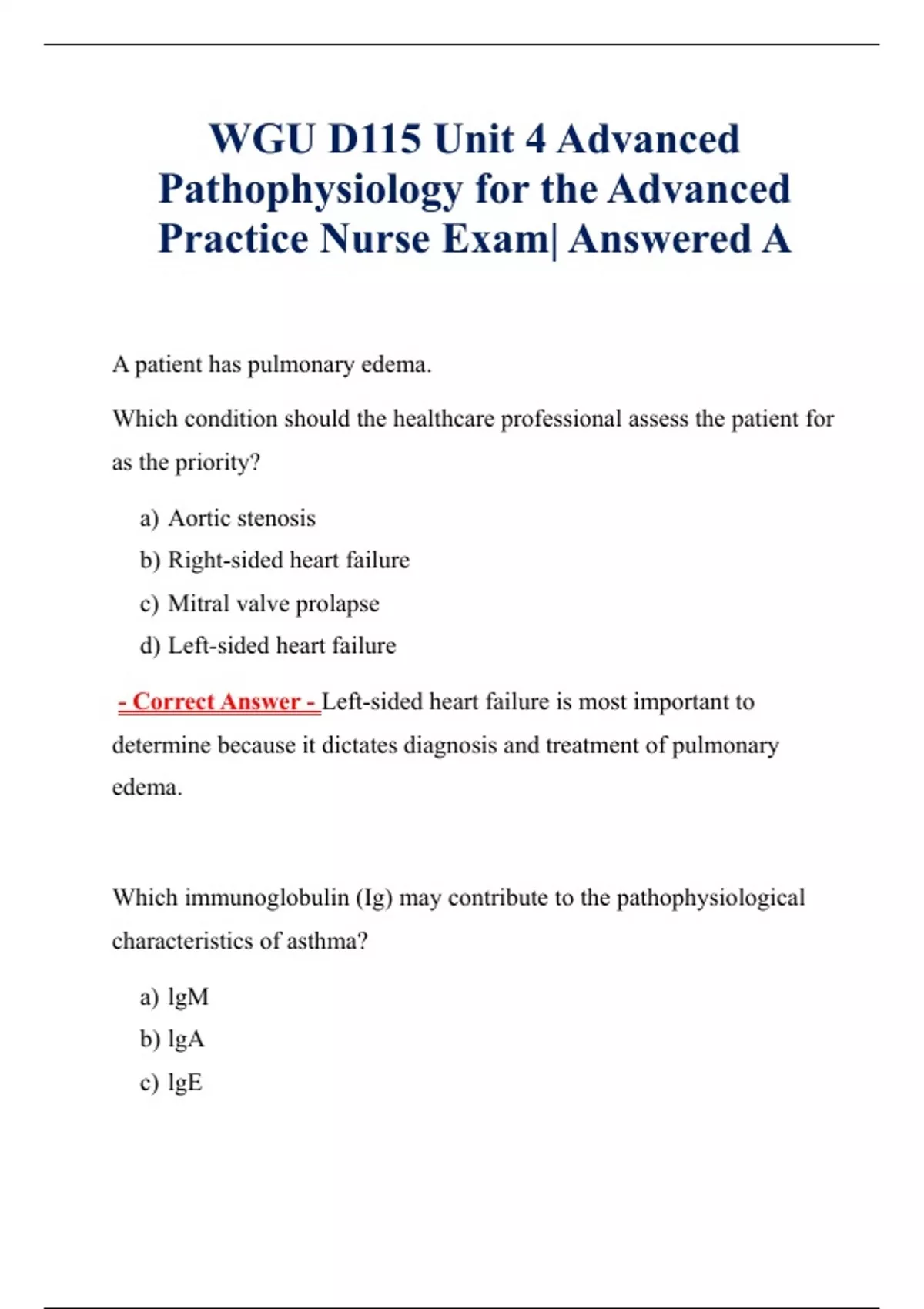 WGU D115 Unit 4 Advanced Pathophysiology for the Advanced Practice Nurse Exam| Answered A WGU D115 Unit 4 Advanced Pathophysiology for the Advanced Practice Nurse Exam| Answered A WGU D115 Unit 4 Advanced Pathophysiology for the Advanced Practice Nurse Exam| Answered A