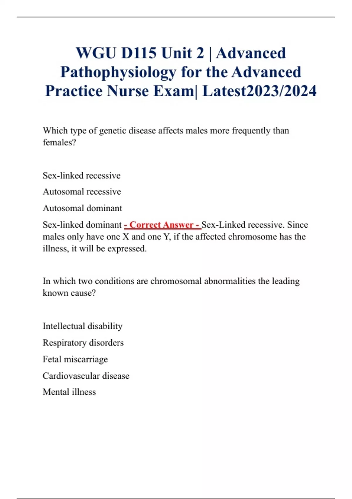 WGU D115 Unit 2 | Advanced Pathophysiology for the Advanced Practice Nurse Exam| Latest2023/2024