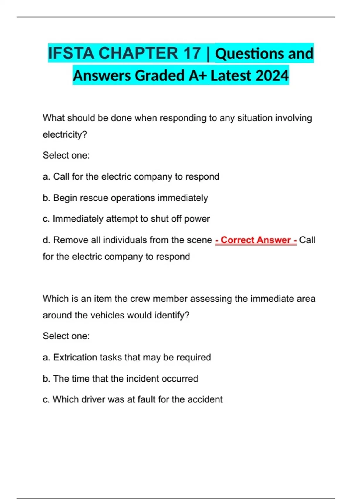 IFSTA CHAPTER 17 | Questions and Answers Graded A+ Latest 2024 IFSTA CHAPTER 17 | Questions and Answers Graded A+ Latest 2024' IFSTA CHAPTER 17 | Questions and Answers Graded A+ Latest 2024