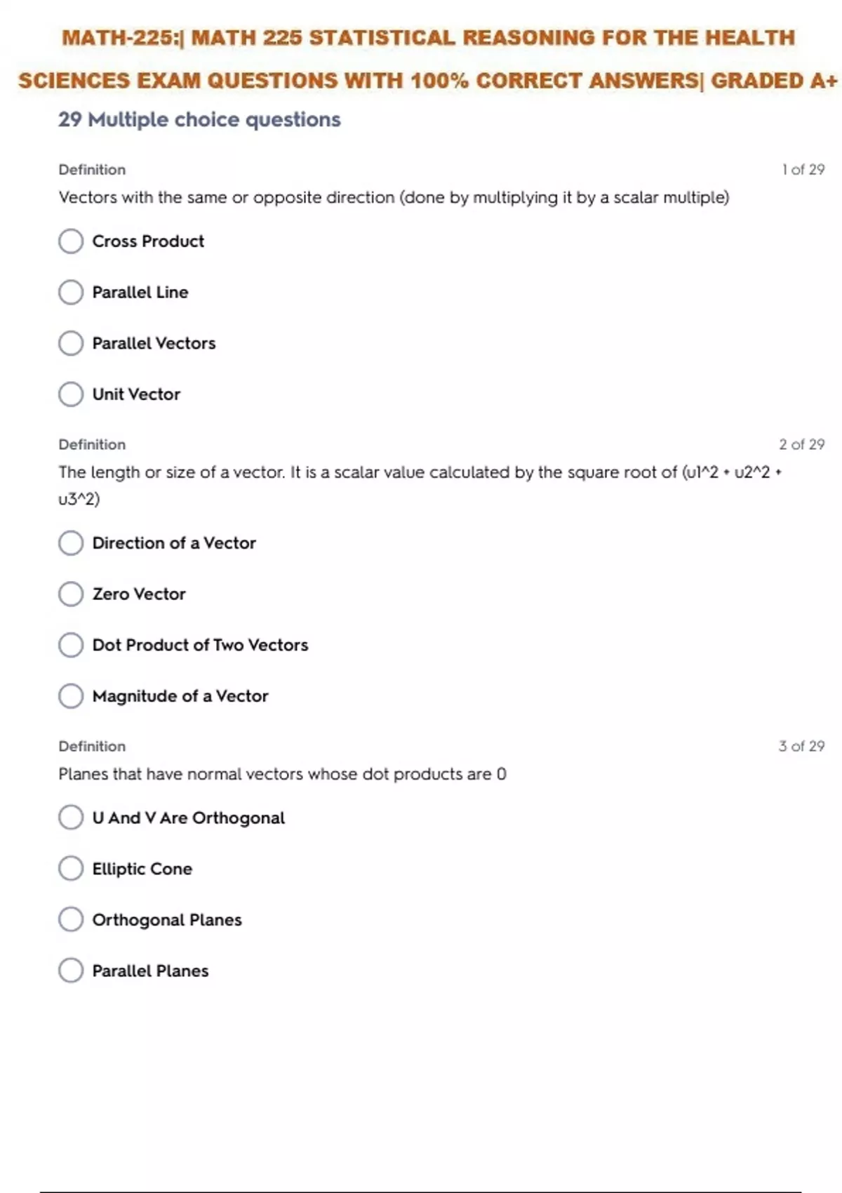 MATH-225:| MATH 225 STATISTICAL REASONING FOR THE HEALTH SCIENCES SELF TEST 6 QUESTIONS WITH 100% CORRECT ANSWERS| GRADED A+