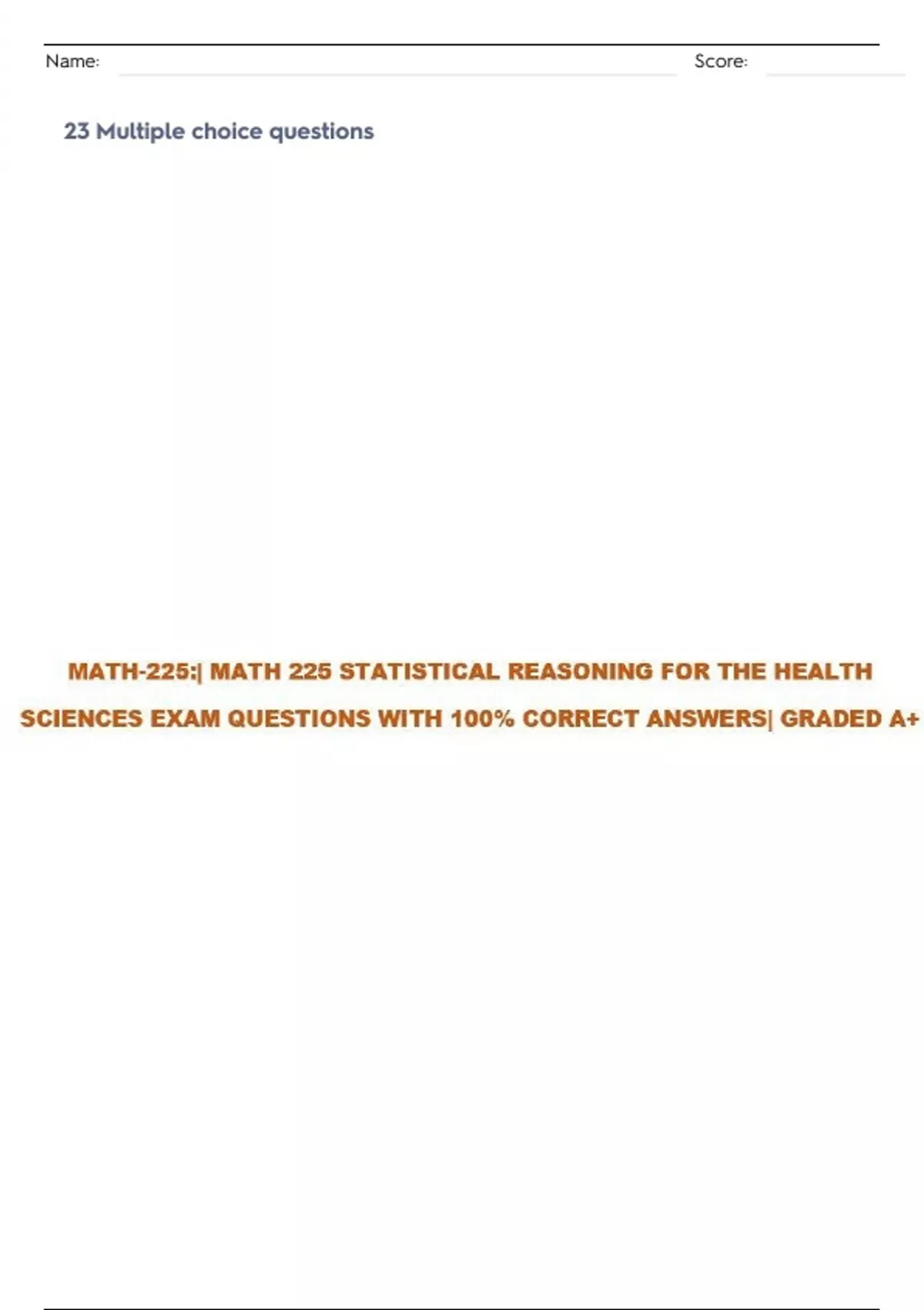 MATH-225:| MATH 225 STATISTICAL REASONING FOR THE HEALTH SCIENCES SELF TEST 4 QUESTIONS WITH 100% CORRECT ANSWERS| GRADED A+