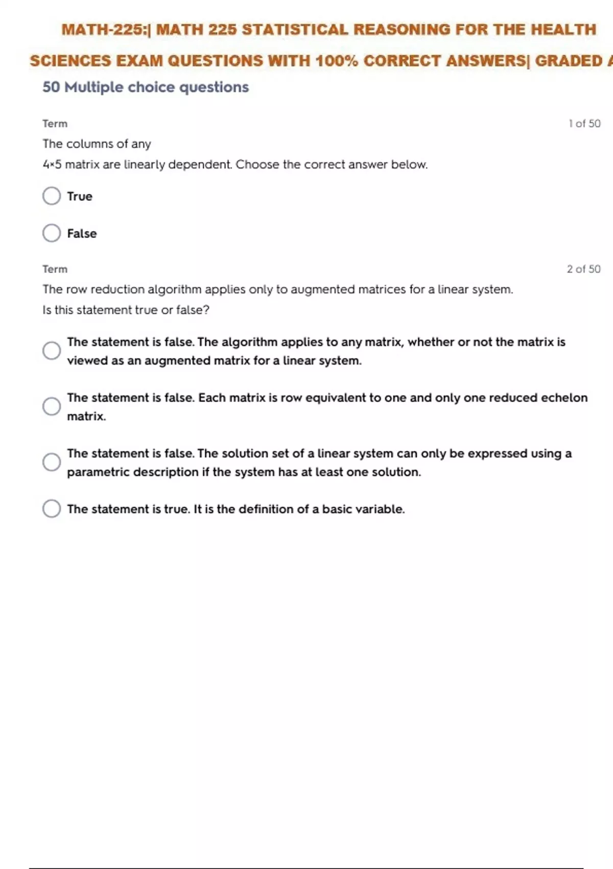 MATH-225:| MATH 225 STATISTICAL REASONING FOR THE HEALTH SCIENCES SELF TEST 2 QUESTIONS WITH 100% CORRECT ANSWERS| GRADED A+