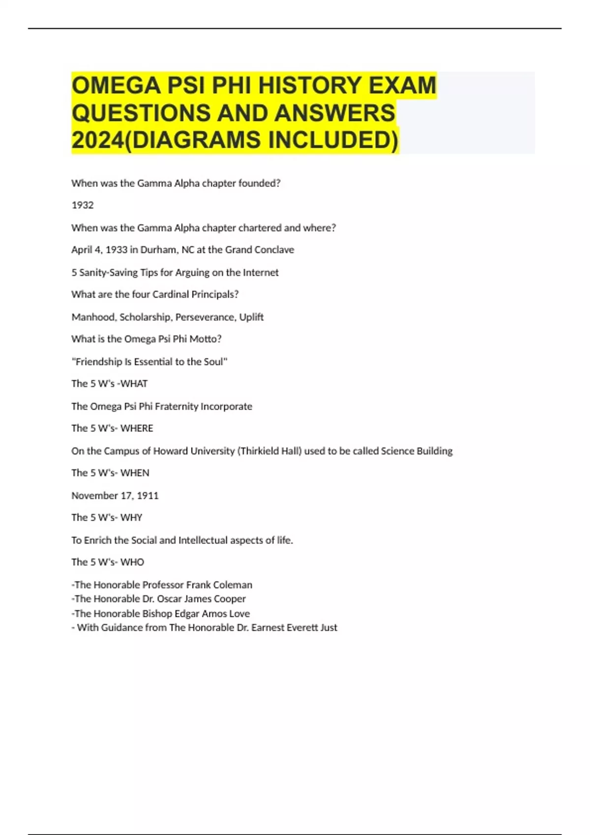 OMEGA PSI PHI HISTORY EXAM QUESTIONS AND ANSWERS 2024(DIAGRAMS INCLUDED).