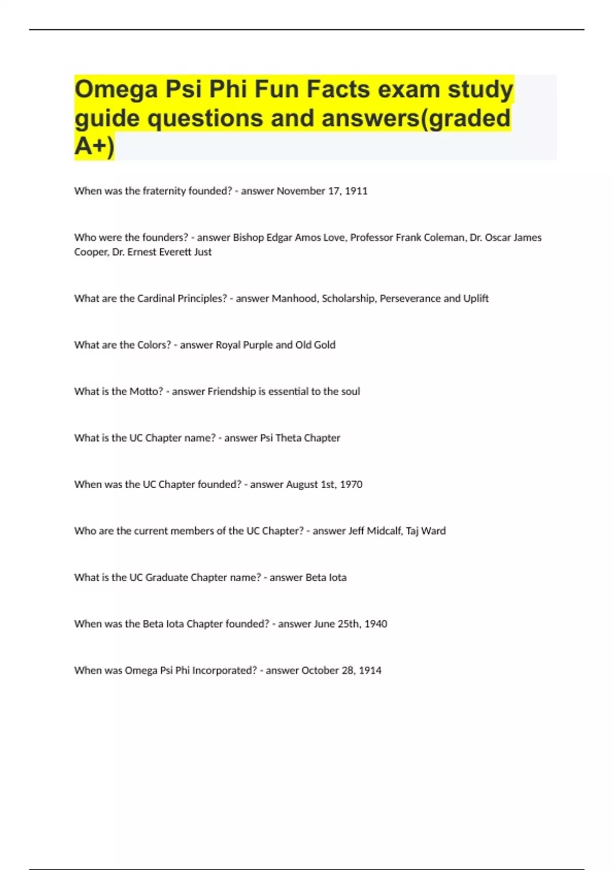 Omega Psi Phi Fun Facts exam study guide questions and answers(graded A+)