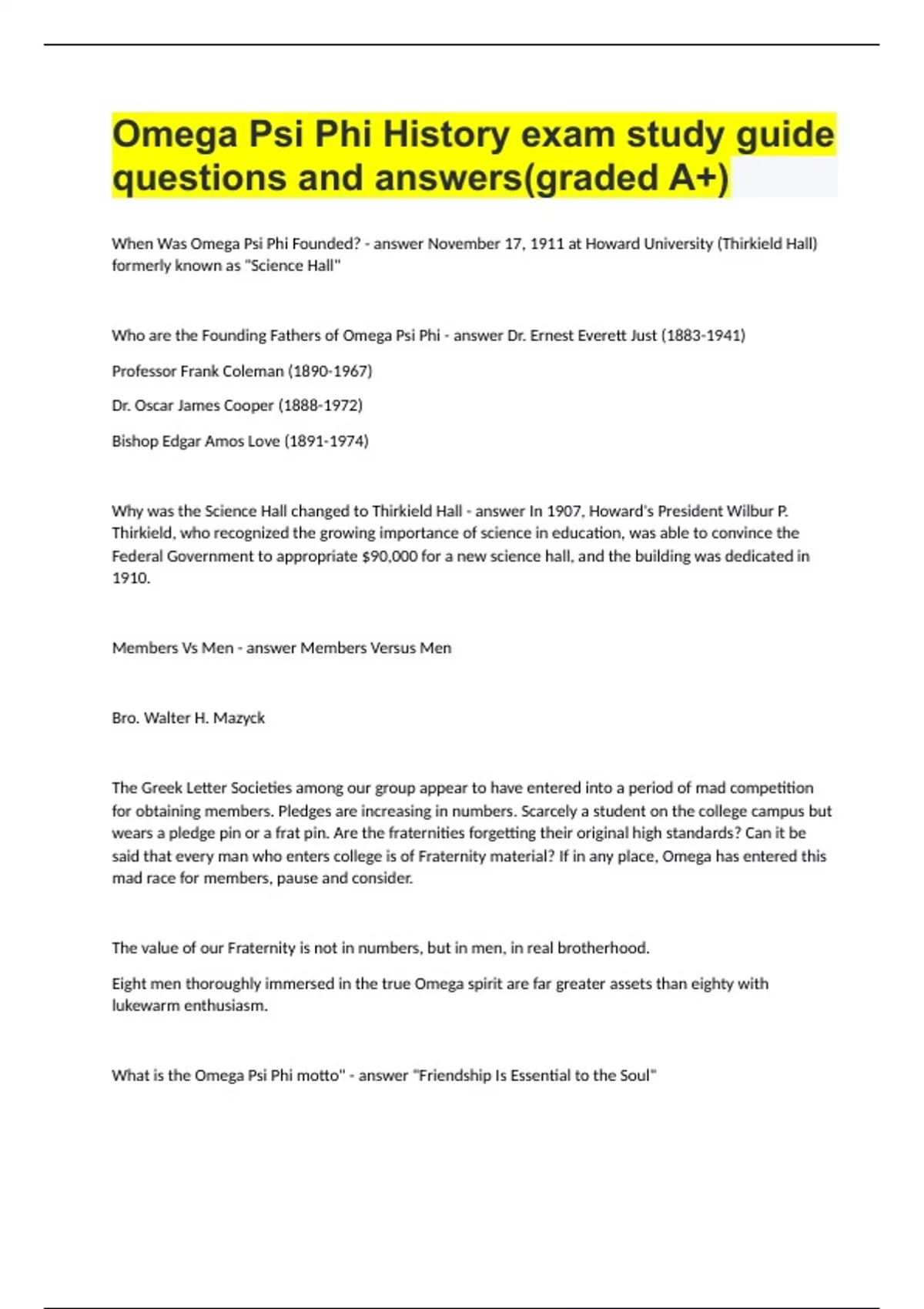 Omega Psi Phi History exam study guide questions and answers(graded A+)