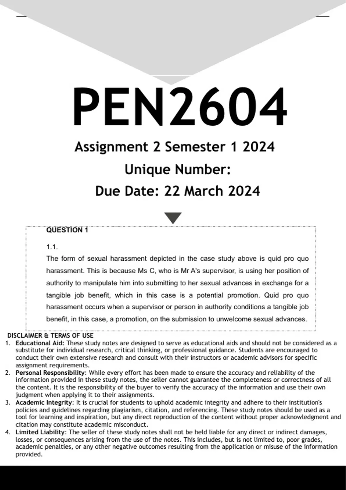PEN2604 Assignment 2 (ANSWERS) Semester 1 2024 - DISTINCTION GUARANTEED