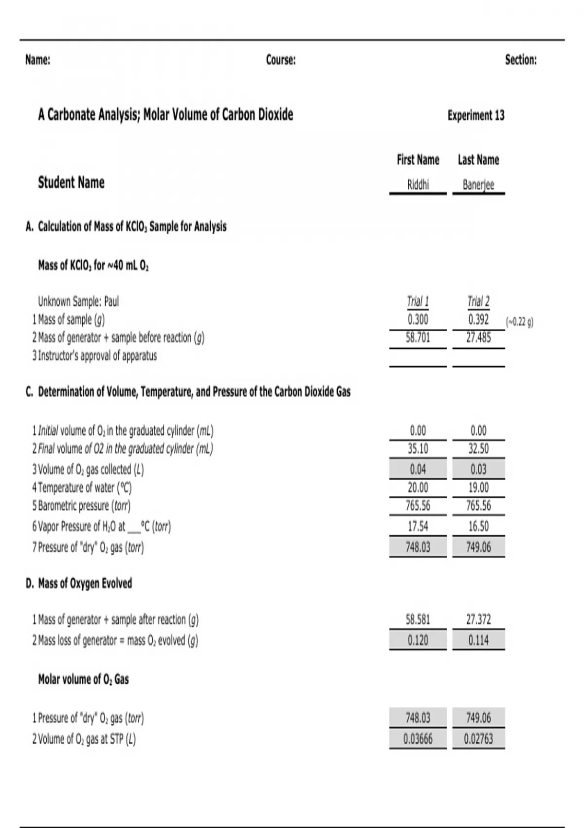 Data only for Experiment #13