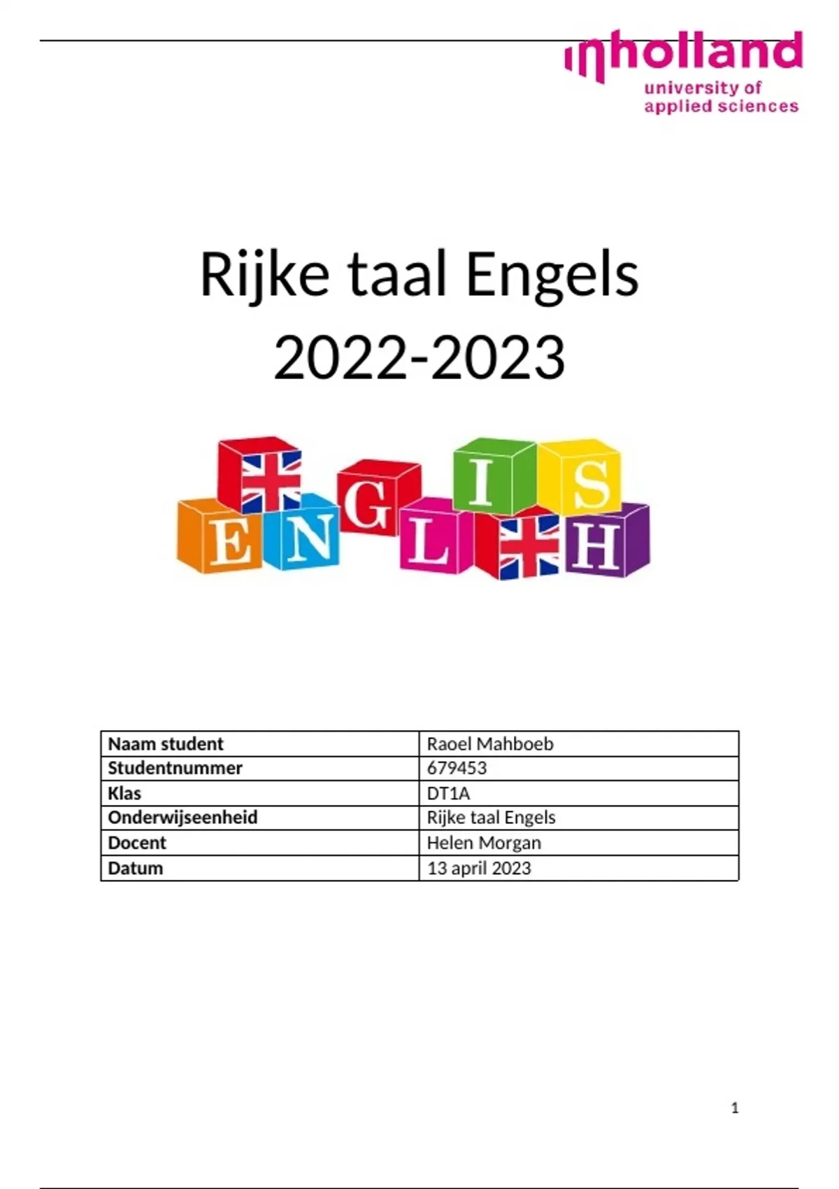 PABO Jaar 1 Rijke taal Engels
