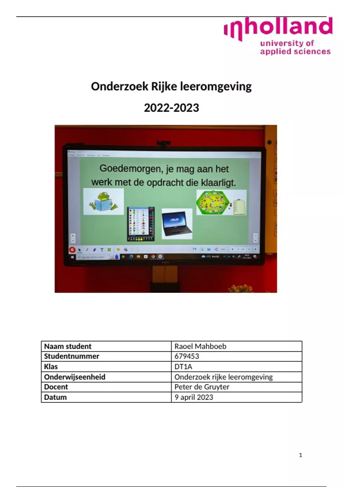 Hierbij mijn versie van het onderzoek rijke leeromgeving. Dit verslag is gemaakt in het kader van mijn studie aan de PABO InHolland. Het verslag is beoordeeld met een 7. Niet 1 op 1 overnemen, maar haal er vooral je inspiratie uit.
