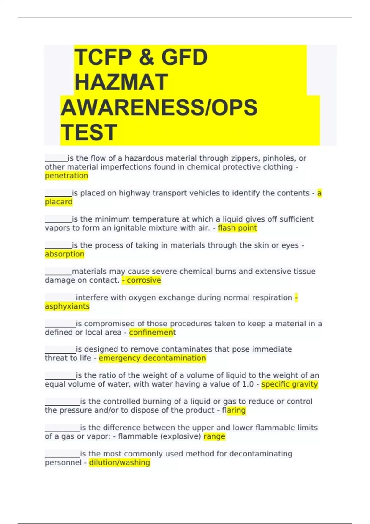 TCFP & GFD HAZMAT AWARENESS/OPS TEST