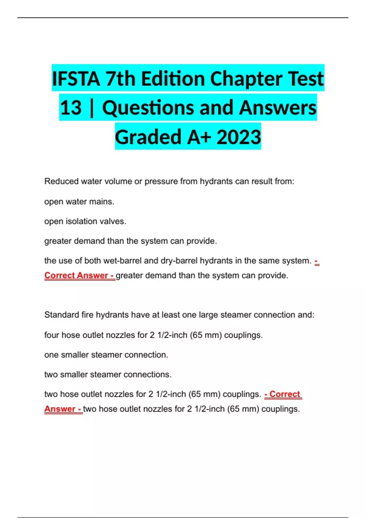 IFSTA 7th Edition Chapter Test 13 | Questions and Answers Graded A+ 2023 IFSTA 7th Edition Chapter Test 13 | Questions and Answers Graded A+ 2023 IFSTA 7th Edition Chapter Test 13 | Questions and Answers Graded A+ 2023