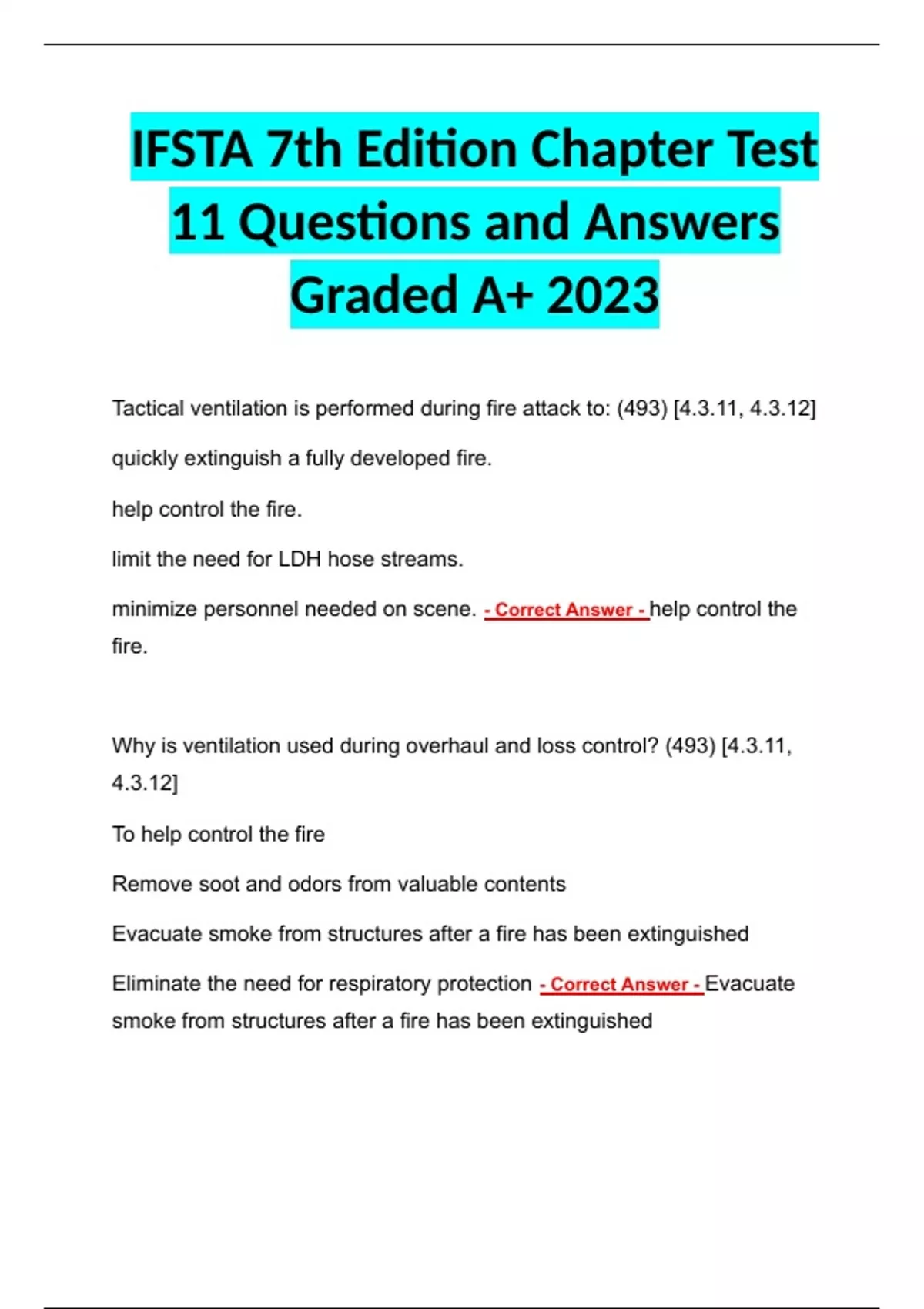 IFSTA 7th Edition Chapter Test 11 Questions and Answers Graded A+ 2023 IFSTA 7th Edition Chapter Test 11 Questions and Answers Graded A+ 2023 IFSTA 7th Edition Chapter Test 11 Questions and Answers Graded A+ 2023