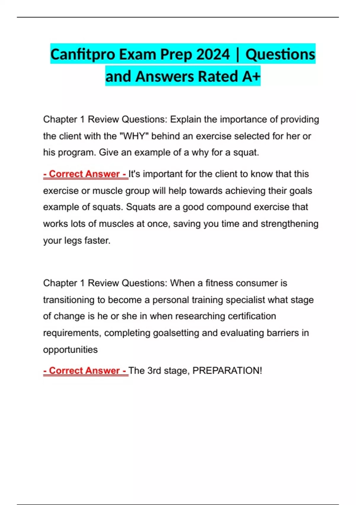 Canfitpro Exam Prep 2024 | Questions and Answers Rated A+