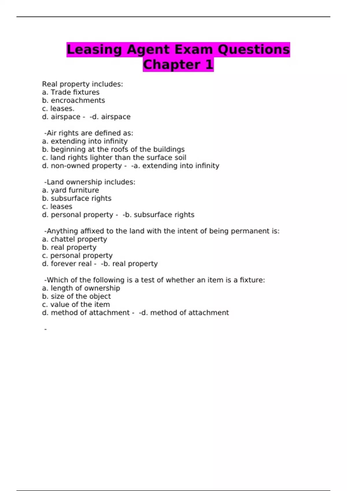 Leasing Agent Exam Questions Chapter 1