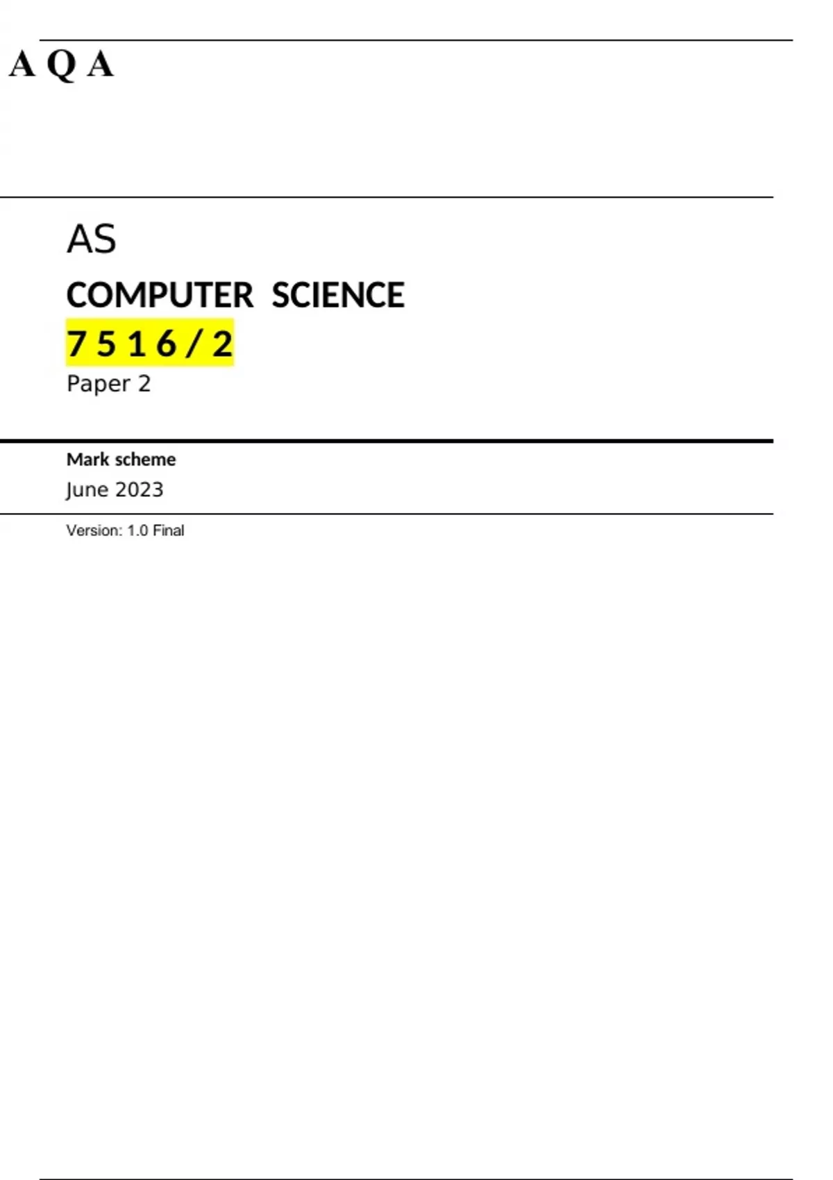 AQA AS Level COMPUTER SCIENCE paper 2 MARK-SCHEME June 2023