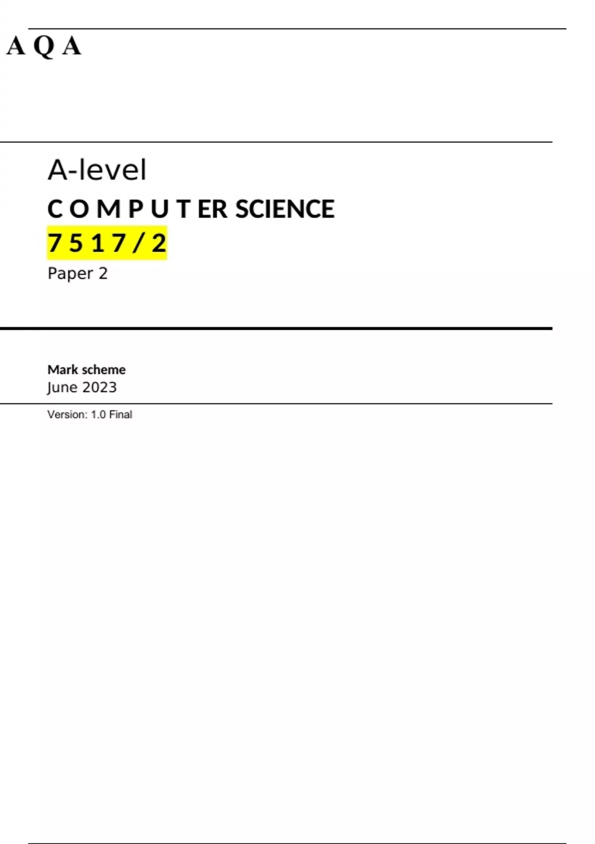 AQA A Level COMPUTER SCIENCE paper 2 MARK-SCHEME June 2023