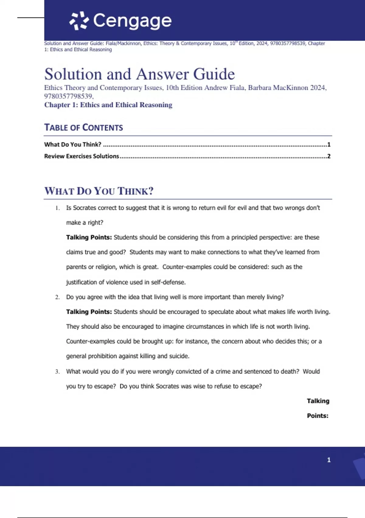 Solution Manual for Ethics 10th Edition Andrew Fiala, Barbara MacKinnon Solution Manual For Ethics Theory and Contemporary Issues, 10th Edition Andrew Fiala, Barbara MacKinnon Chapter 1-20