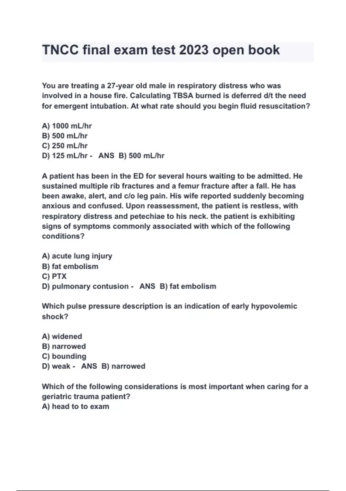 TNCC final exam test 2023 open book