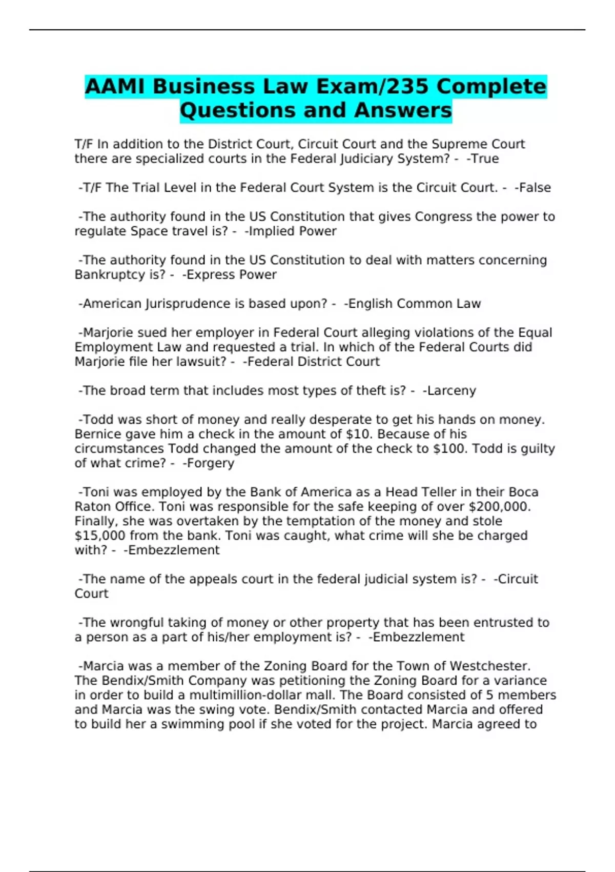 AAMI Business Law Exam/235 Complete Questions and Answers