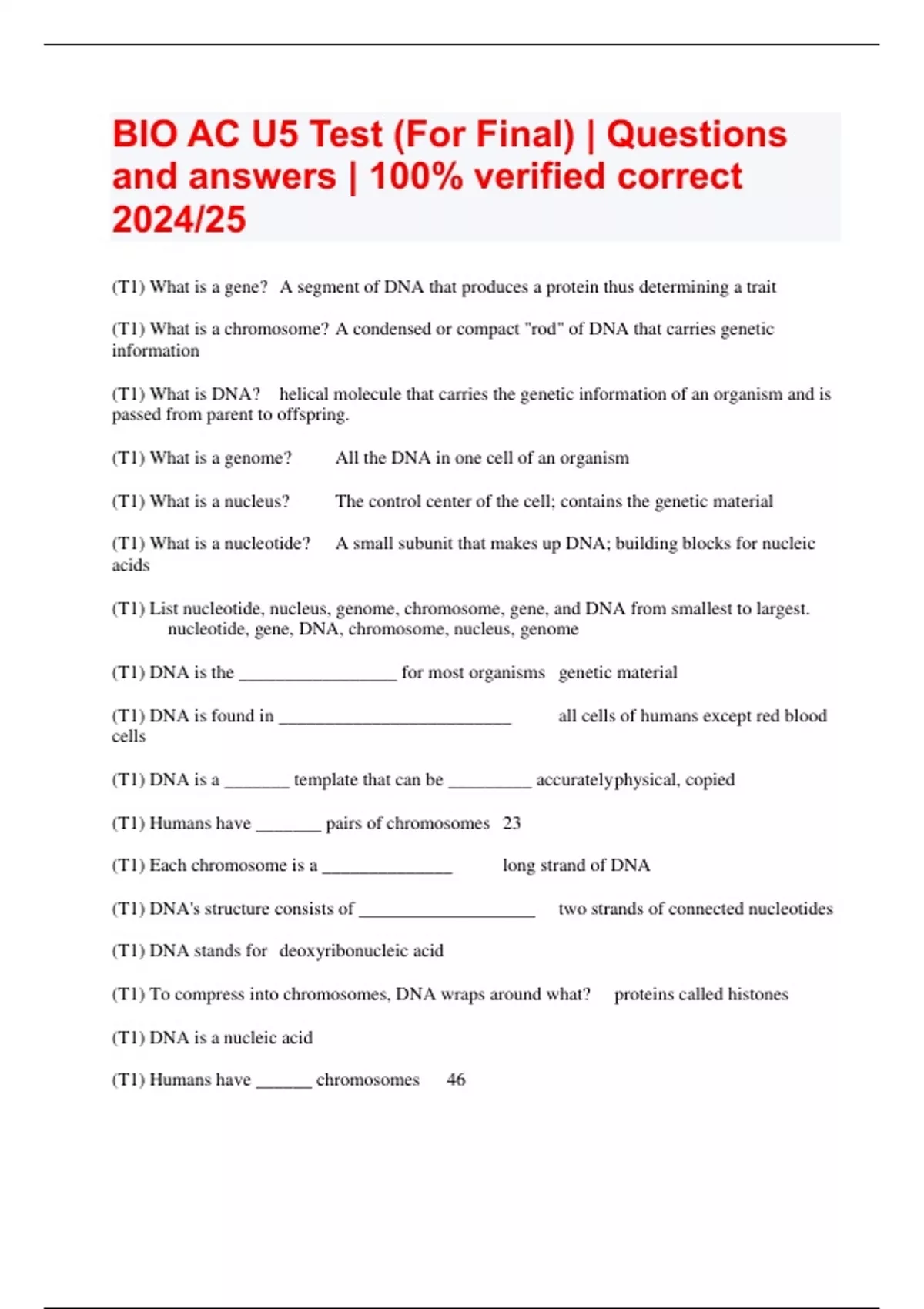 BIO AC U5 Test (For Final) | Questions and answers | 100% verified correct 2024/25